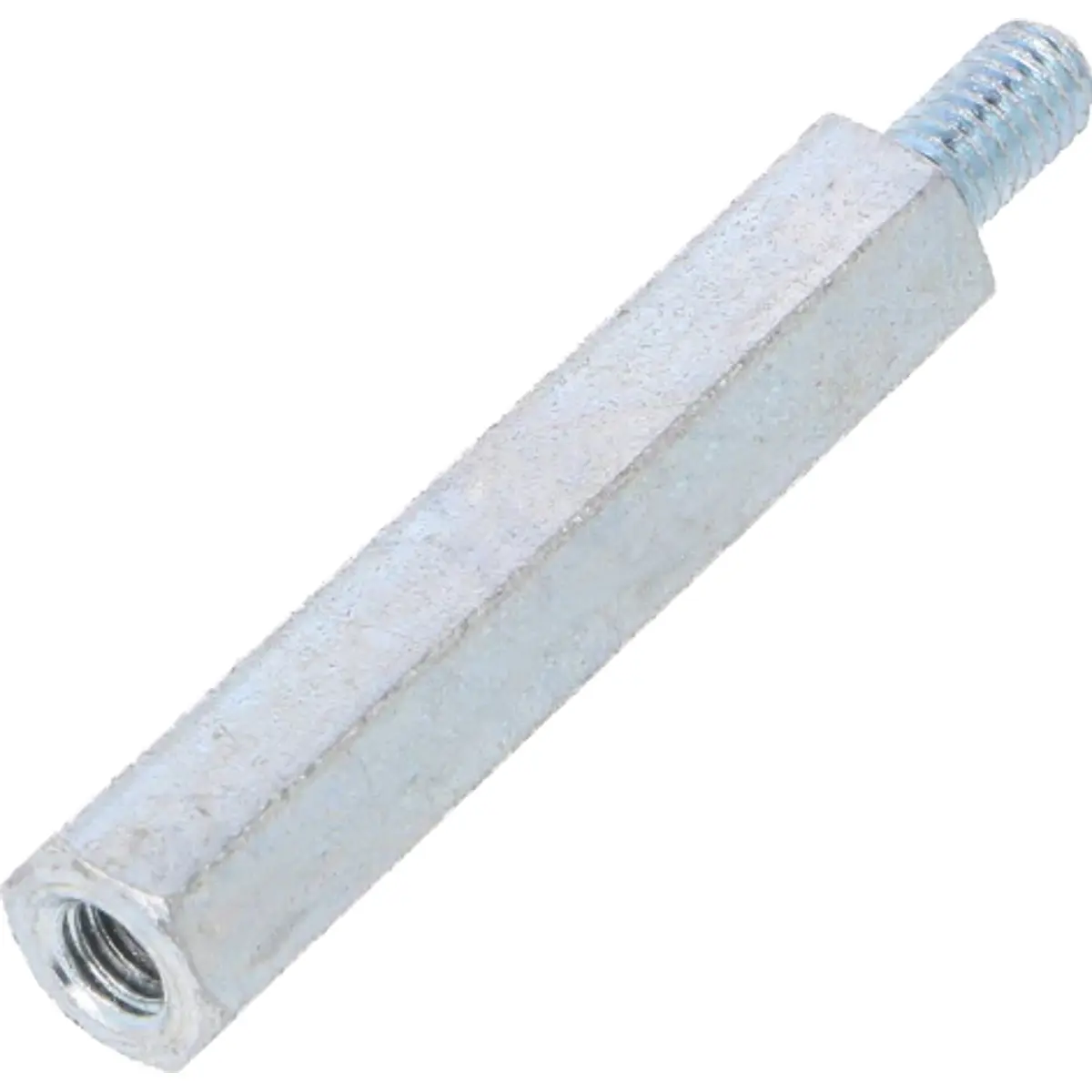 Espaçador fêmea/macho com roscas M4 e comprimento de 35mm, concebido para manter separação entre componentes com precisão em montagens mecânicas. O corpo é de aço, com revestimento de zinco, e apresenta uma forma hexagonal nos chumbadores para ajuste estável. Compatível com fixações M4 em aplicações de engenharia, automação e construção de estruturas. Oferece resistência à corrosão, durabilidade e facilidade de montagem, sem referências a marcas ou modelos específicos.