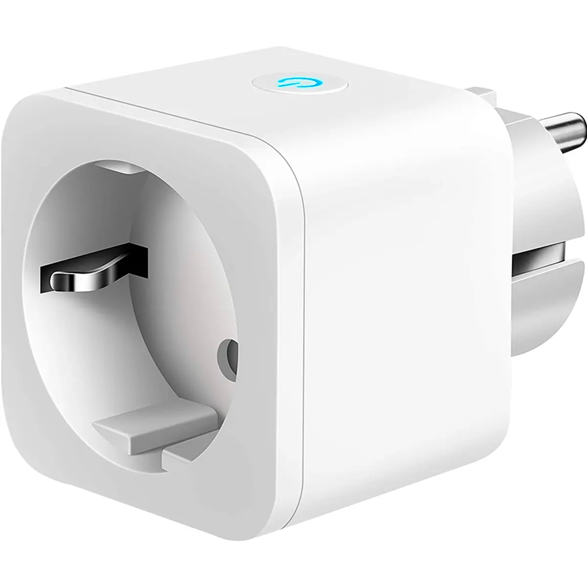 Tomada inteligente com conectividade WiFi 2.4 GHz e capacidade até 3680 W, tipo de tomada europeu Tipo F. Permite ligar e desligar remotamente via aplicativo, monitorizar o consumo diário e mensal, programar temporizadores e calendários, e criar cenas automáticas com base em condições como clima e localização. Compatível com plataformas de automação e assistentes de voz, incluindo Tuya Smart, Alexa e Google Assistant, proporcionando gestão de energia, comodidade e eficiência em casa.