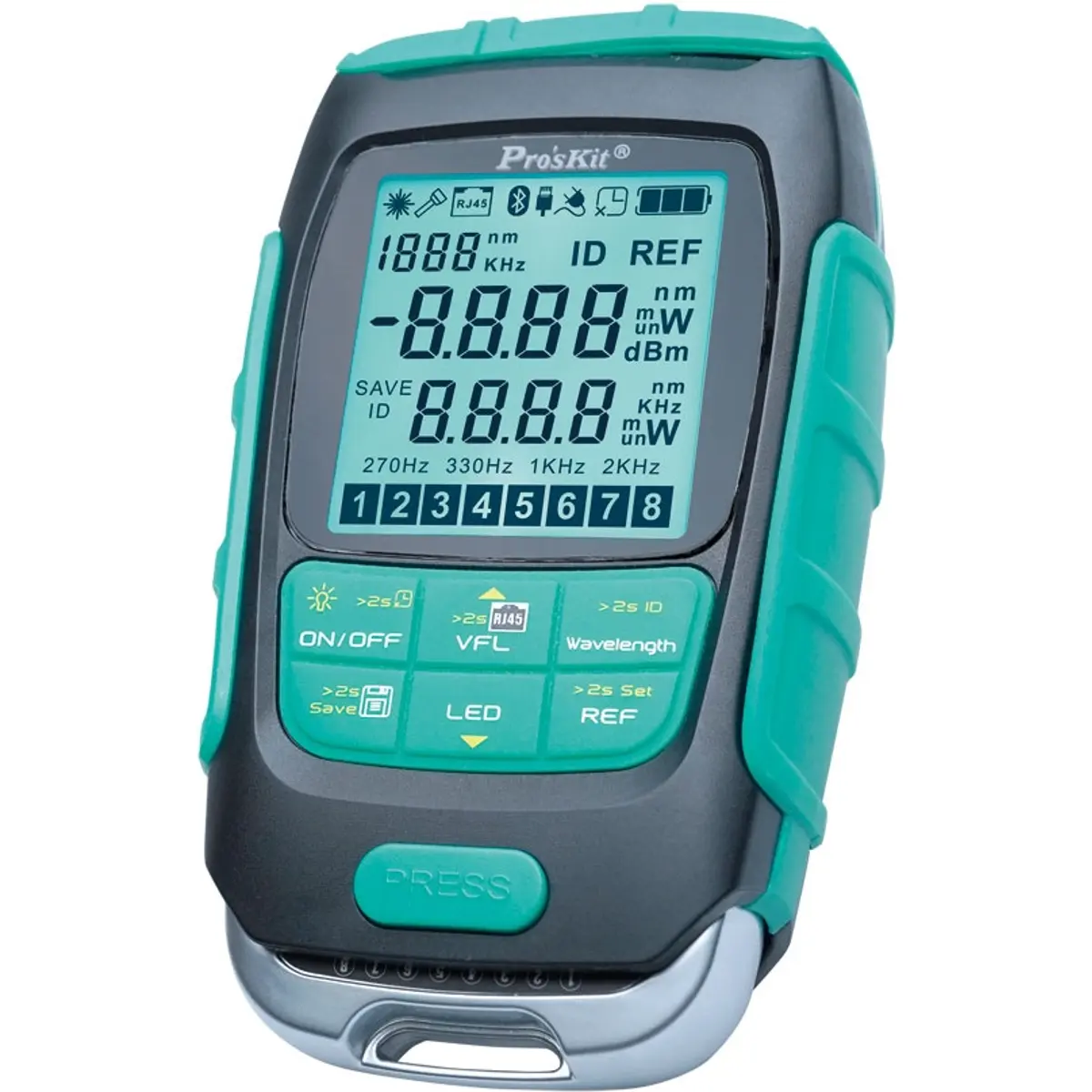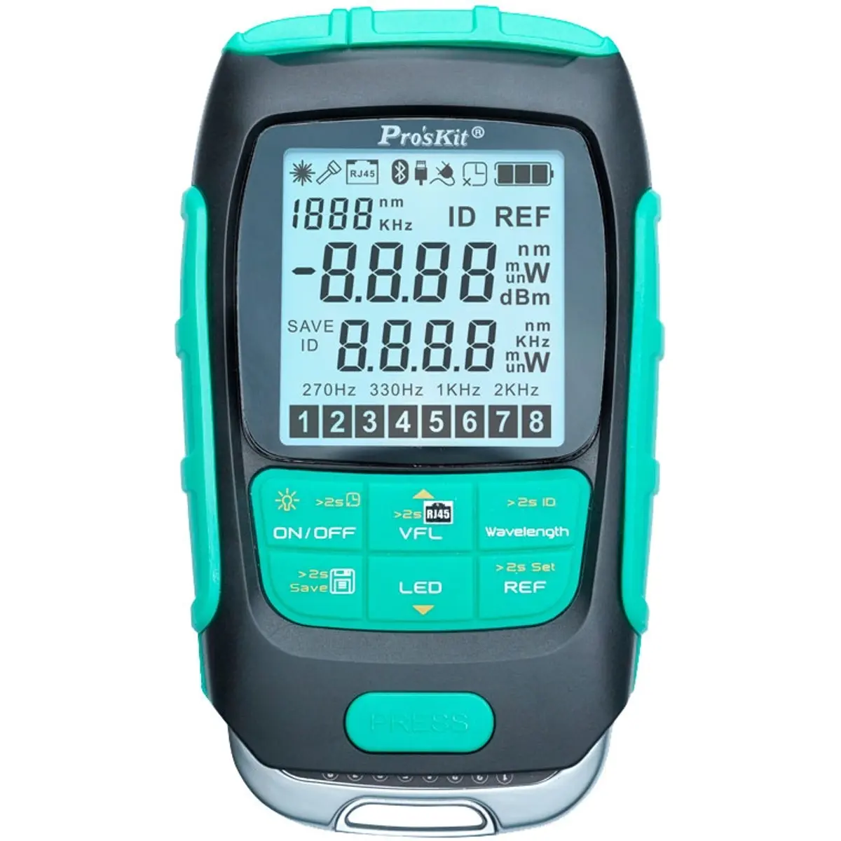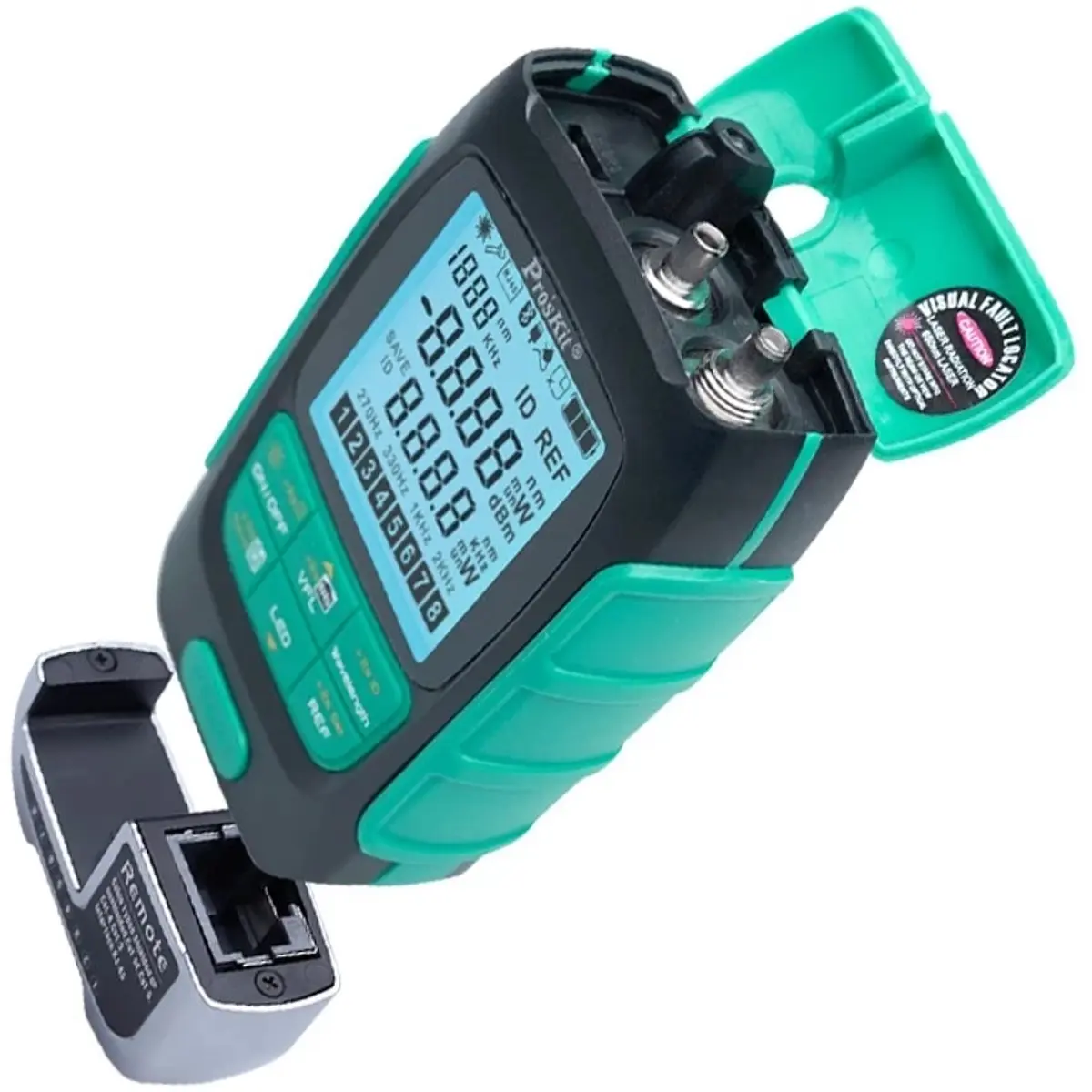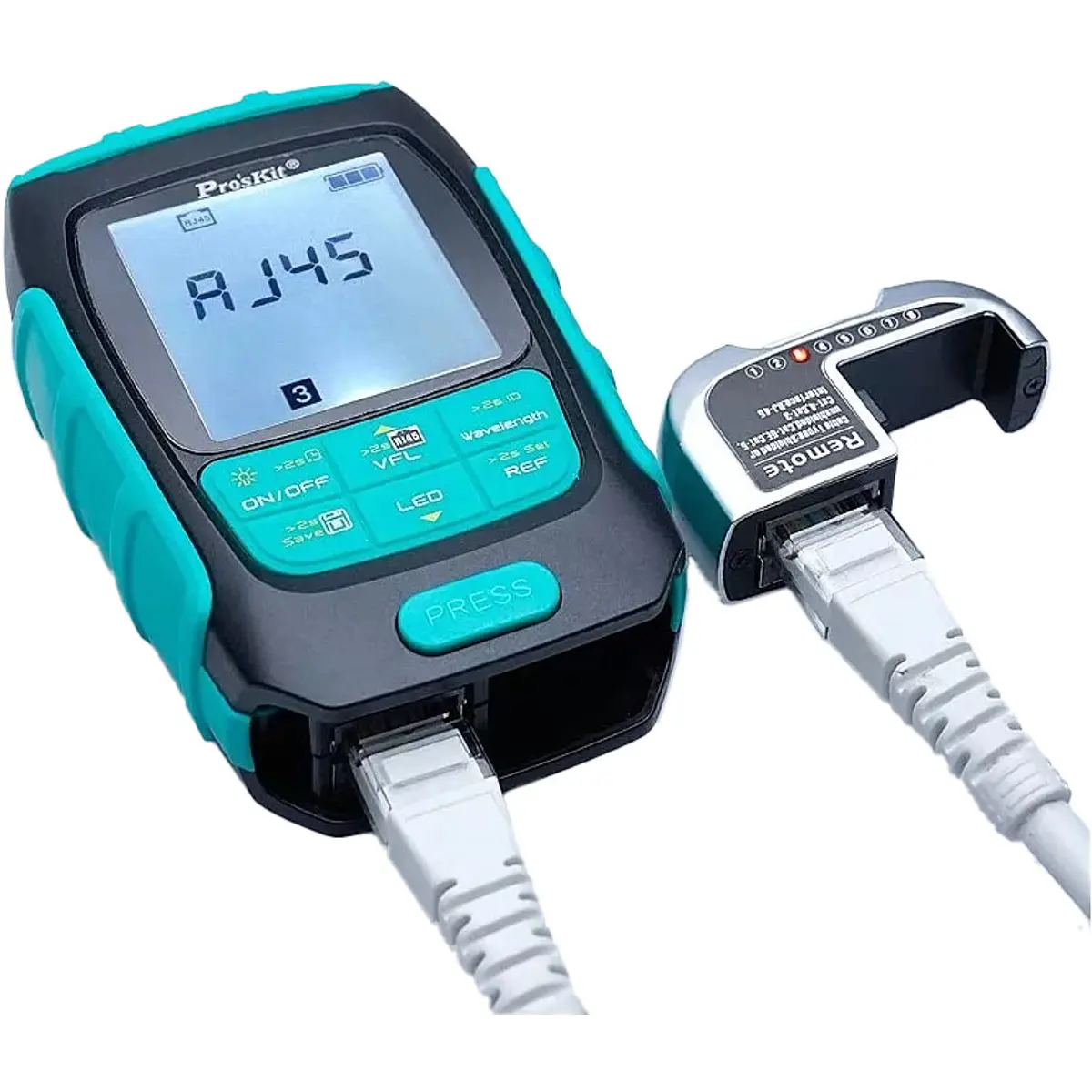Ferramenta 4 em 1 para teste de fibras ópticas e cabos LAN. Com medição de potência óptica, localizador de falhas em fibras, testador de cabos LAN e Lanterna LED