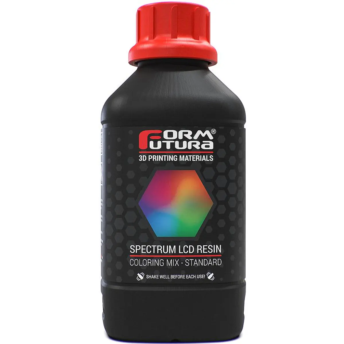 FormFutura "Spectrum LCD Color Mix" é uma resina de impressão 3D de alta qualidade. Esta resina tem propriedades mecânicas como PLA e propriedades térmicas como ABS. A resina Spectrum LCD Color Mix combina fácil impressão com excelente resistência ao calor e rigidez.