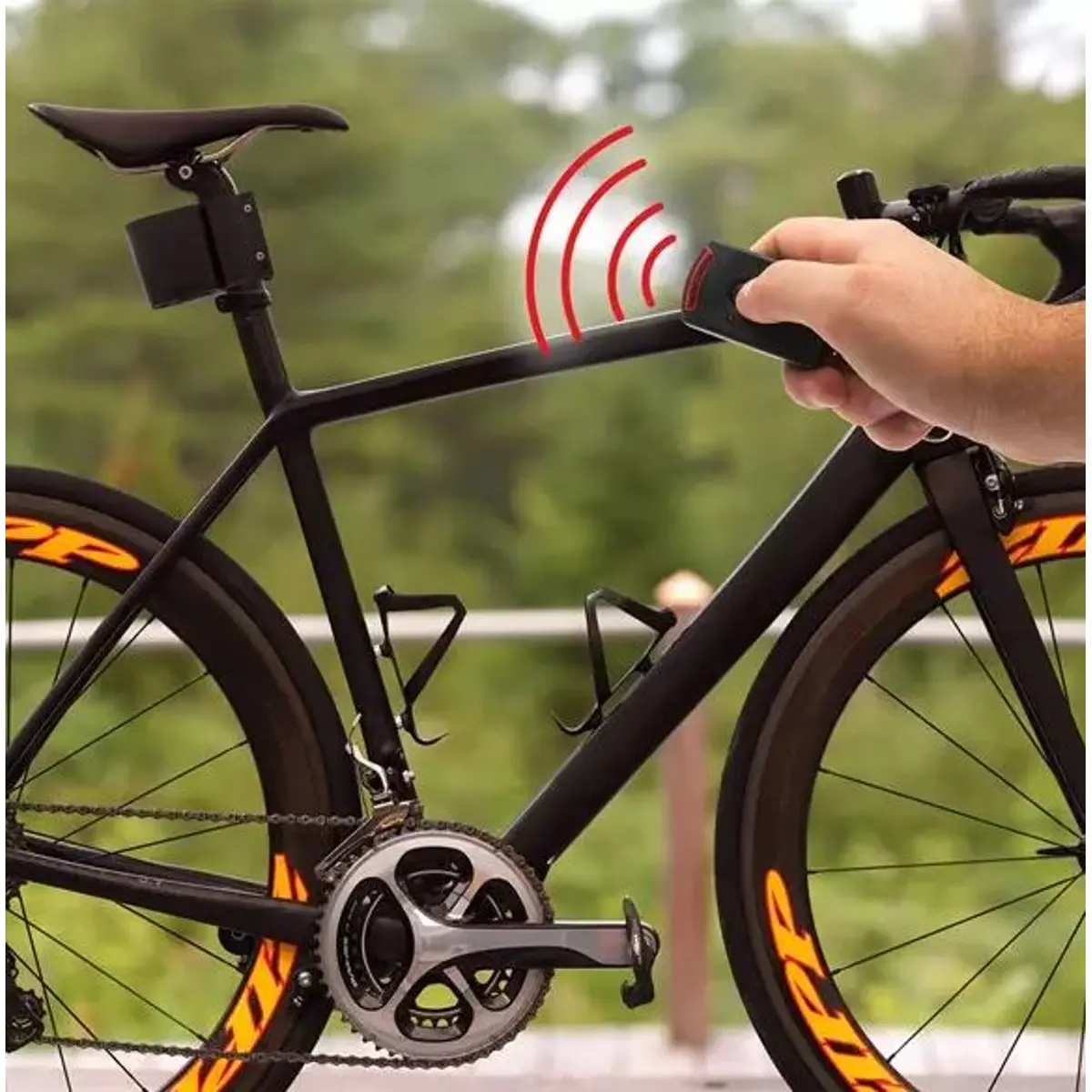 Proteja sua bicicleta com este alarme. Este produto destina-se a fornecer maior proteção. Usando o controle remoto, você pode ativar o alarme ou desligar o alarme. Se o alarme estiver ligado e a bicicleta se mover, o alarme de 110 decibéis começará a tocar. O alarme dura cerca de 30 segundos, se detectar o movimento novamente, este começará a tocar novamente.