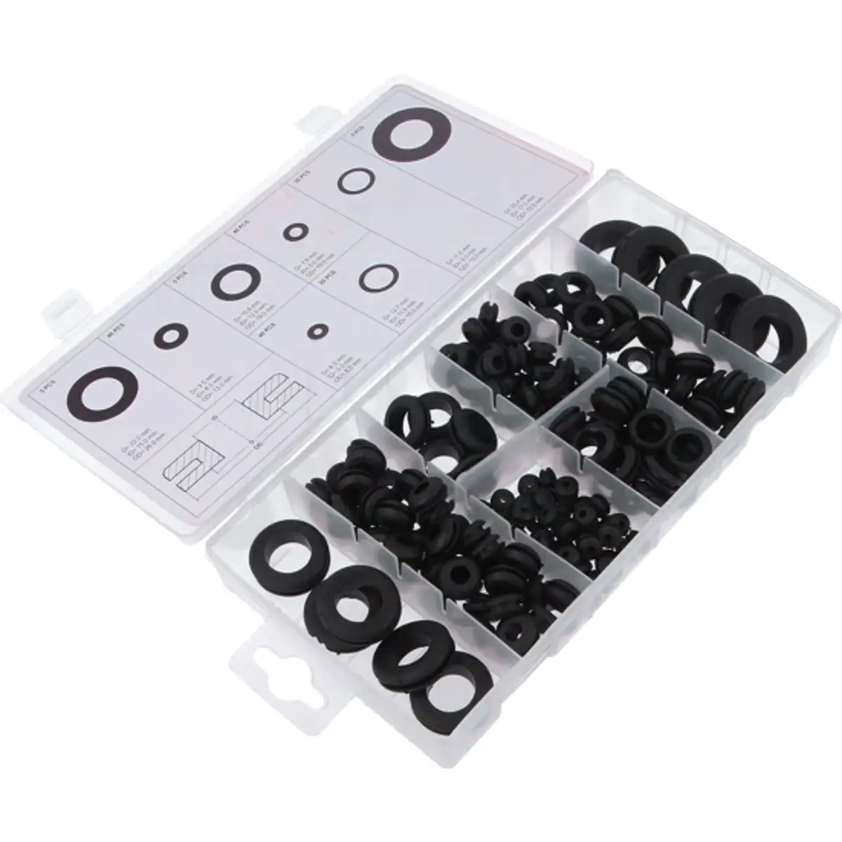 Sortido de 180 ilhós passa-fios em borracha