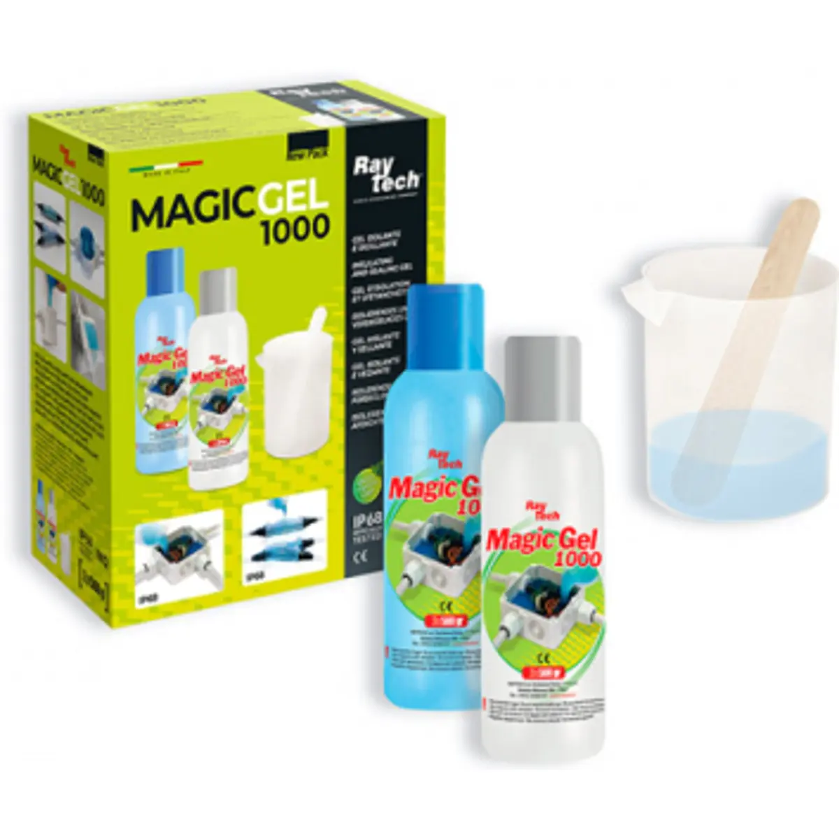 O gel isolante e vedante com cor, garante um grau de proteção IP68 pode substituir qualquer tipo de resina. Trata-se de um isolamento auto-selante de tipo polimérico de utilização única, com reticulação a frio. Depois de vertido, o isolamento, caracterizado por uma viscosidade muito baixa, engloba e reveste qualquer tipo de material reticulado em menos de 10 minutos. Reticula com um pico isotérmico muito baixo que não solicita termicamente os materiais com os quais entra em contacto.
