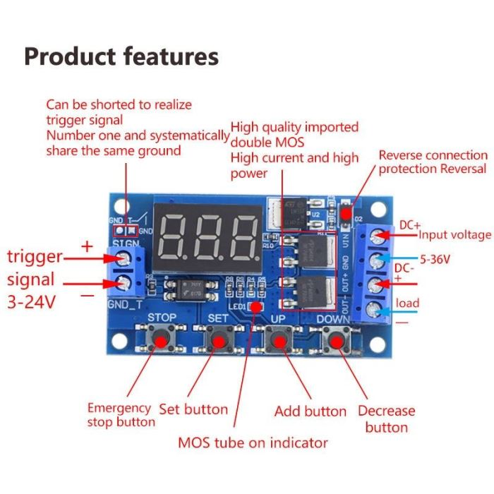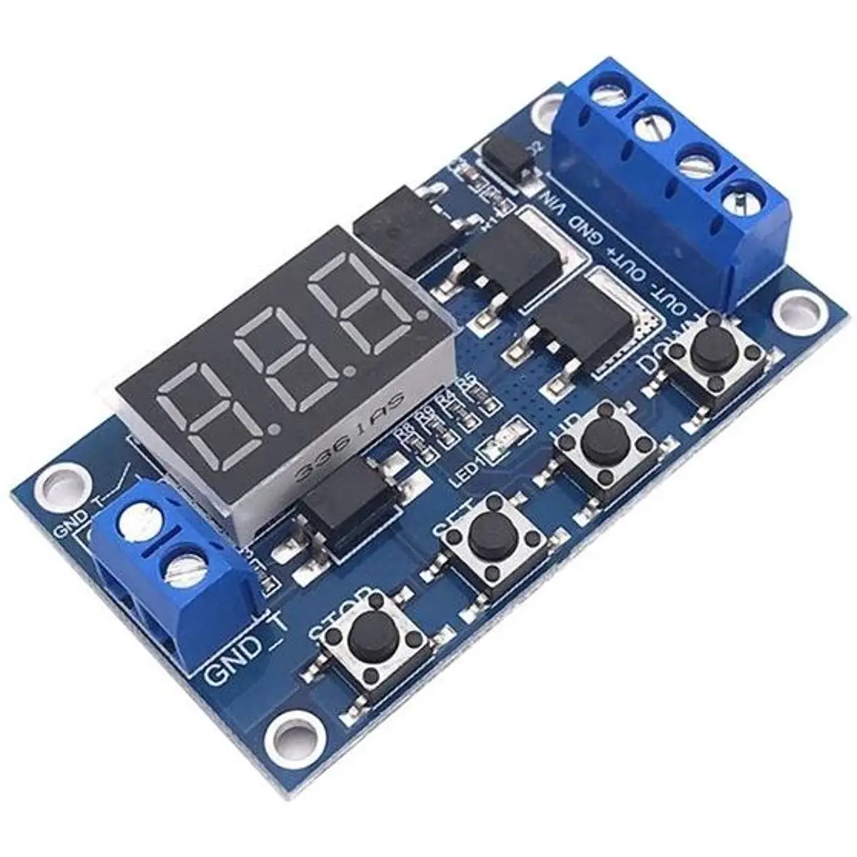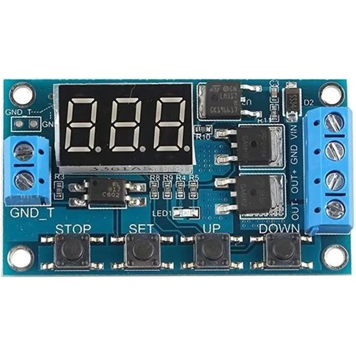 Módulo baseado em: DUAL MOSFET; O tempo de atraso é de 0,1 segundos (min) a 999 minutos (máximo) continuamente ajustável