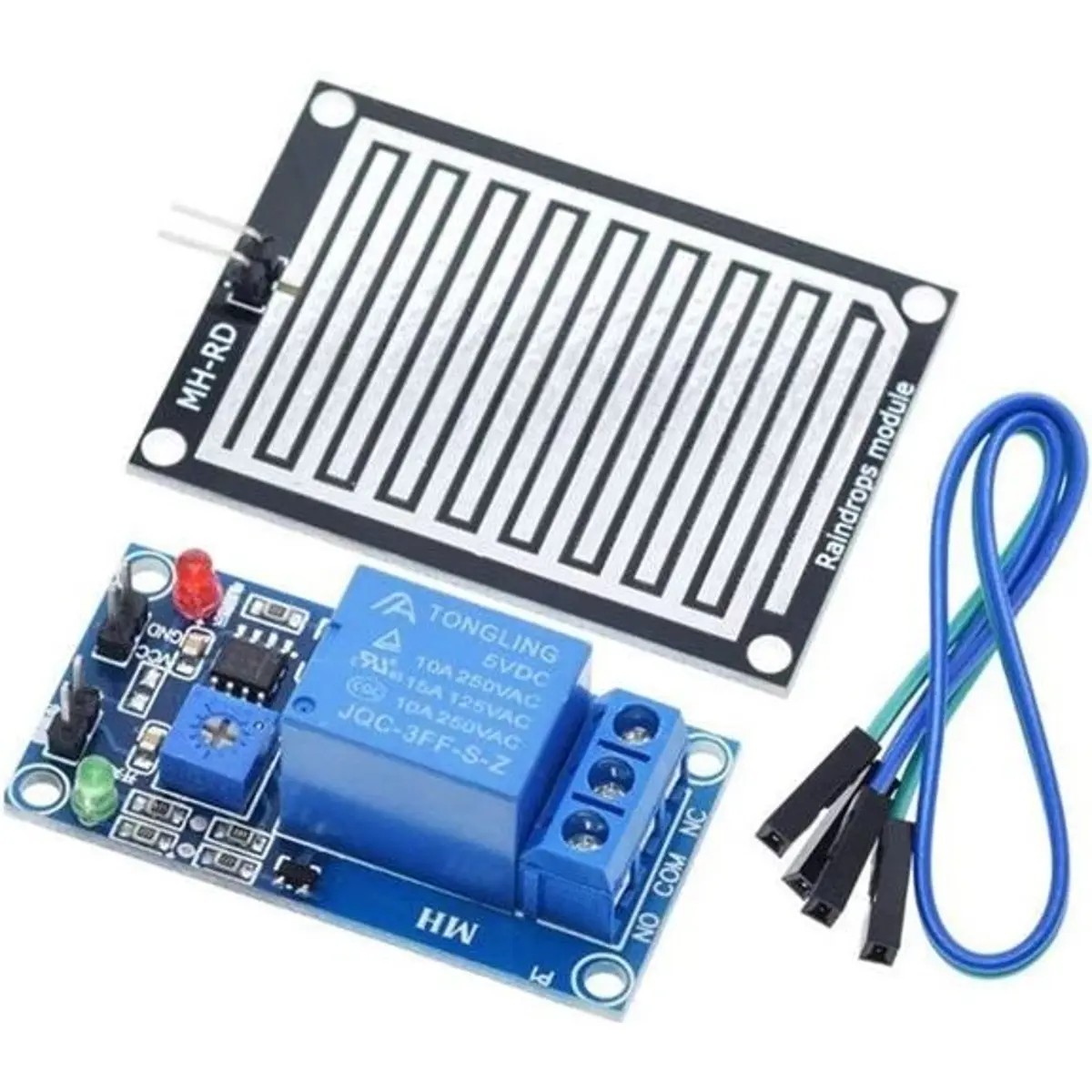 Sensor de chuva com saída para contatos de relé. Modo de dois estados com sensibilidade de comutação ajustável.