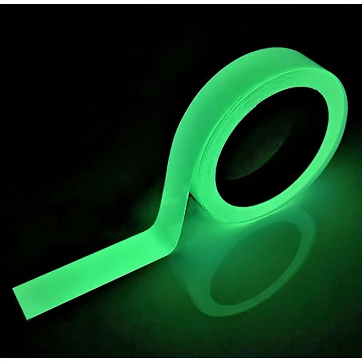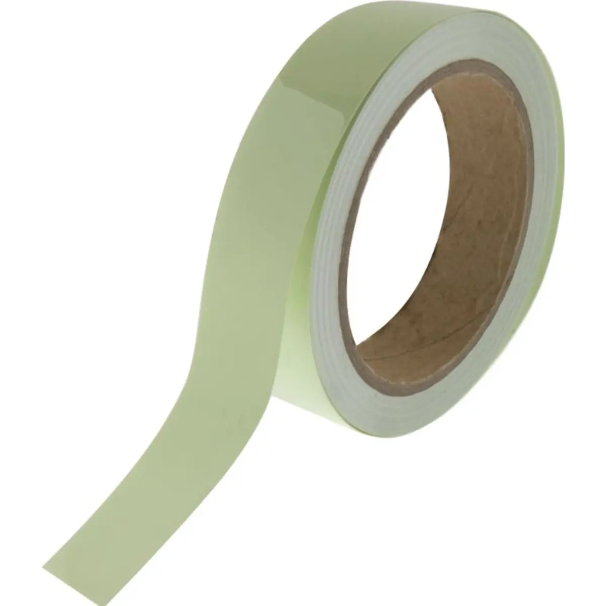Fita adesiva fluorescente para marcações, decorações e sinalização em ambientes internos e externos. Com largura de 25 mm e comprimento de 10 m, é fabricada em filme PET resistente; a cor branco-esverdeado brilha no escuro, apresentando verde no escuro. Suporta temperaturas entre -20 °C e +80 °C, mantendo aderência e removível sem deixar sujidade. Ideal para atividades noturnas, marcações temporárias e sinalização de áreas, com aplicação prática e durabilidade em condições diversas.