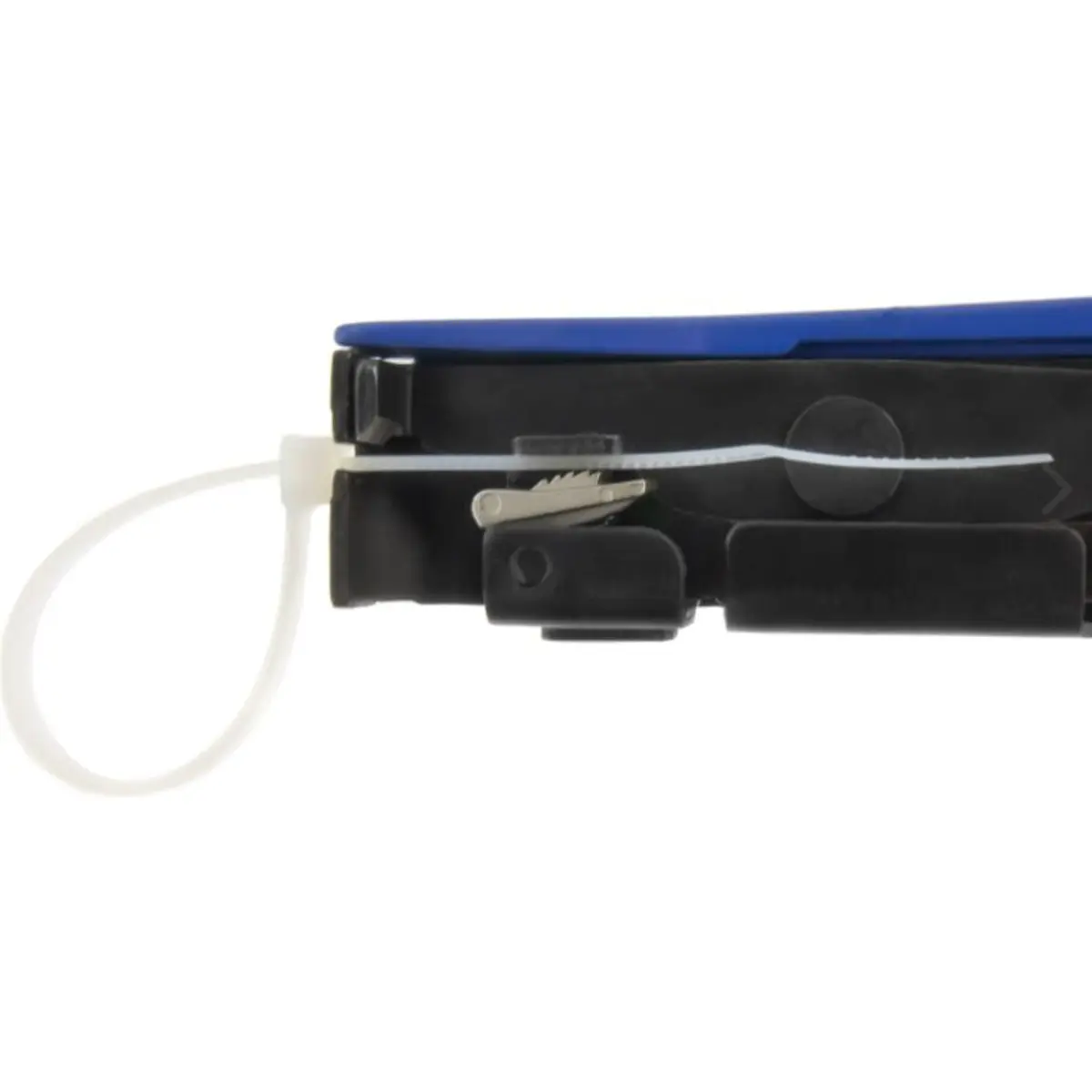 Permite tensionar e cortar braçadeiras de nylon de 2,2 mm a 4,8 mm de largura em uma única etapa.