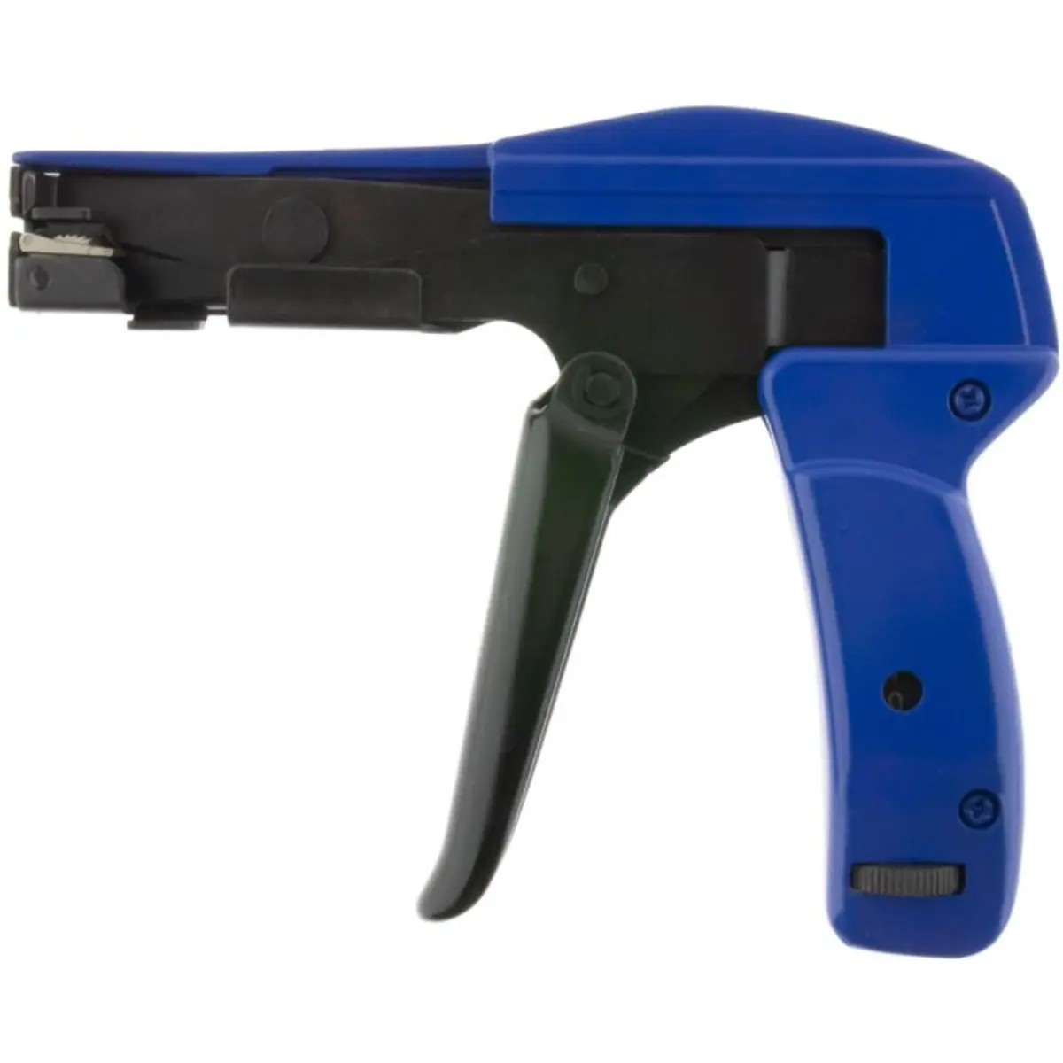 Alicate de aperto e corte para abraçadeiras de serrilha de nylon, com largura entre 2,2 e 4,8 mm. Permite tensionar e cortar as braçadeiras em uma única etapa, com tensão regulável, proporcionando montagem rápida e controlada em aplicações que utilizam abraçadeiras de serrilha.