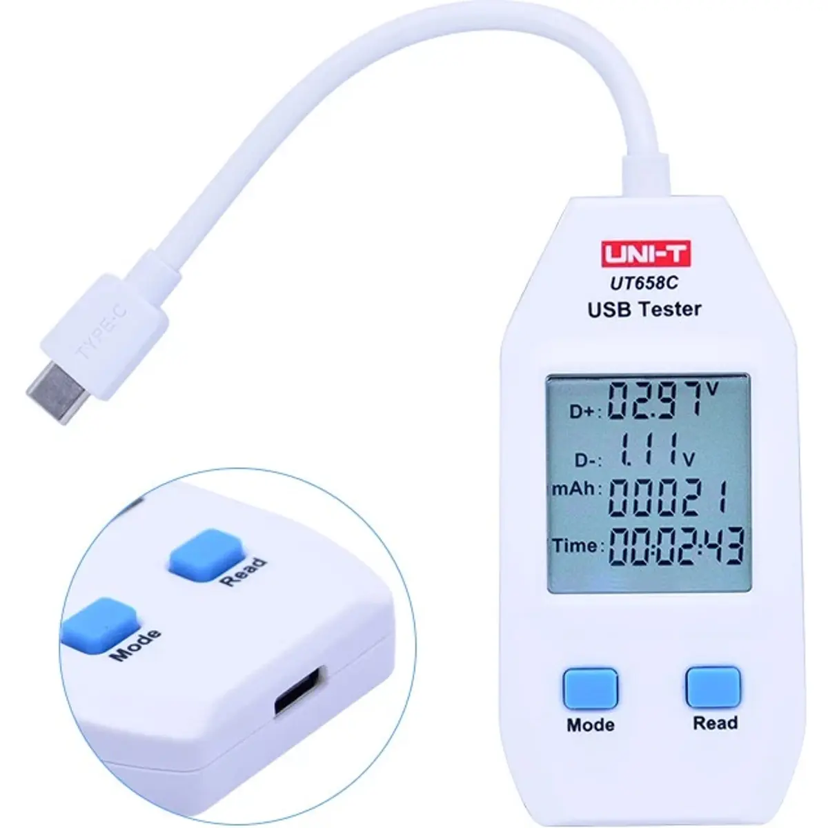Uni-T UT658C - Medidor de tensão corrente e carga USB-C (USB Tester) c/ memória