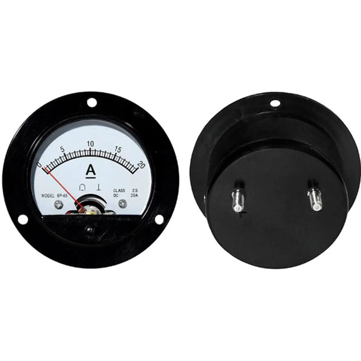 Amperímetro de painel analógico redondo (0-20A DC) - Ø72mm