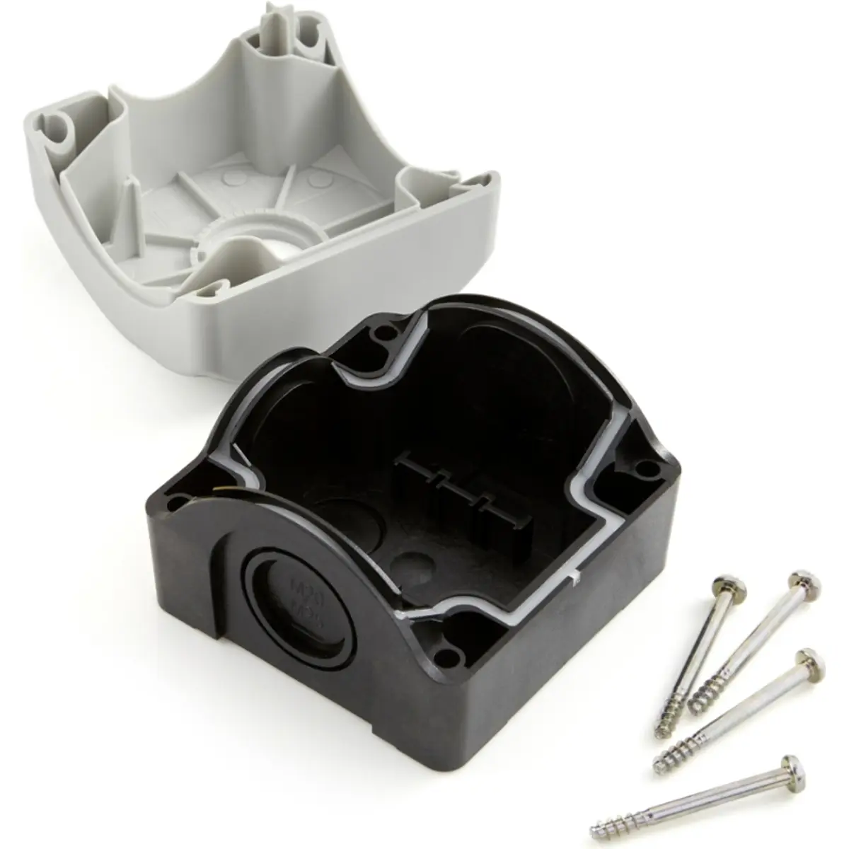 Caixa de botoneira para 1 atuador Ø22.3 mm, com dimensões de 72 x 72 x 56 mm, concebida para botões de pressão com instalação Ø22.3 mm. Ideal para montagem em quadros elétricos ou painéis, facilita a organização de comandos e a manutenção de sistemas. Proporciona encaixe estável, proteção de componentes e acesso rápido aos contactos, sendo uma solução prática para instalações de automação com espaço compacto.