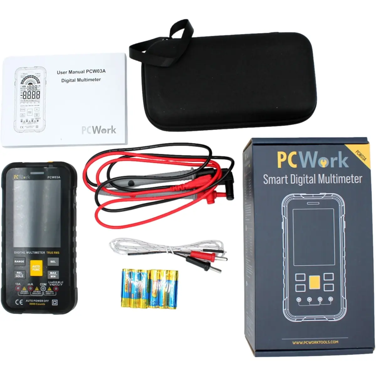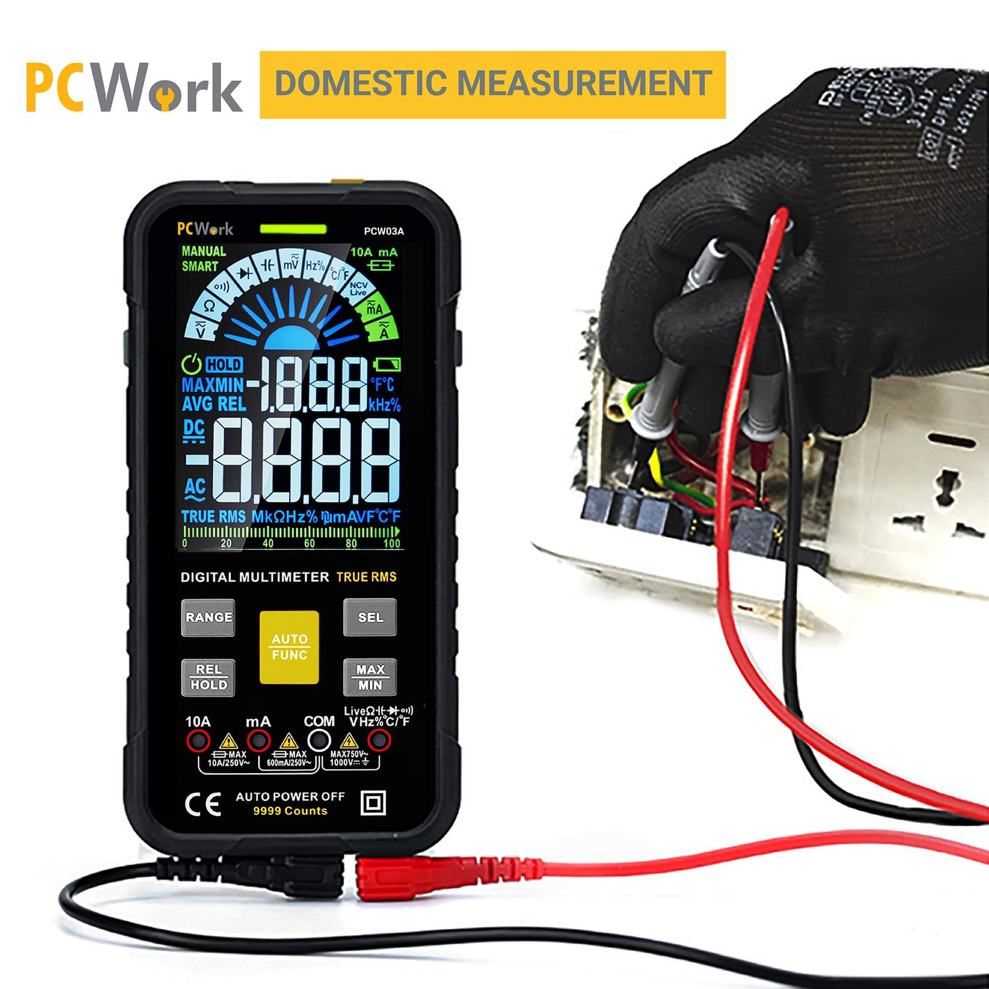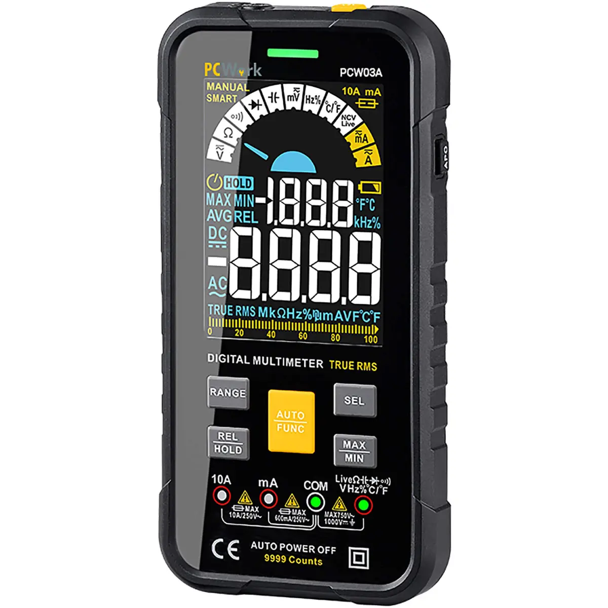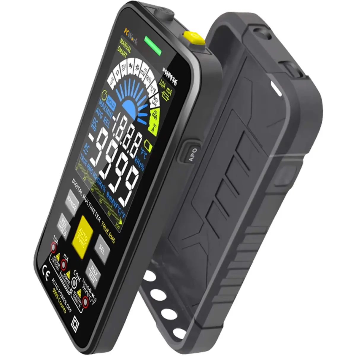 O PCW03A é um multímetro digital com display colorido HD, design inovador, função de medição inteligente e classificação CAT IV 600V. É perfeito para eletricistas, profissionais e amadores ambiciosos.