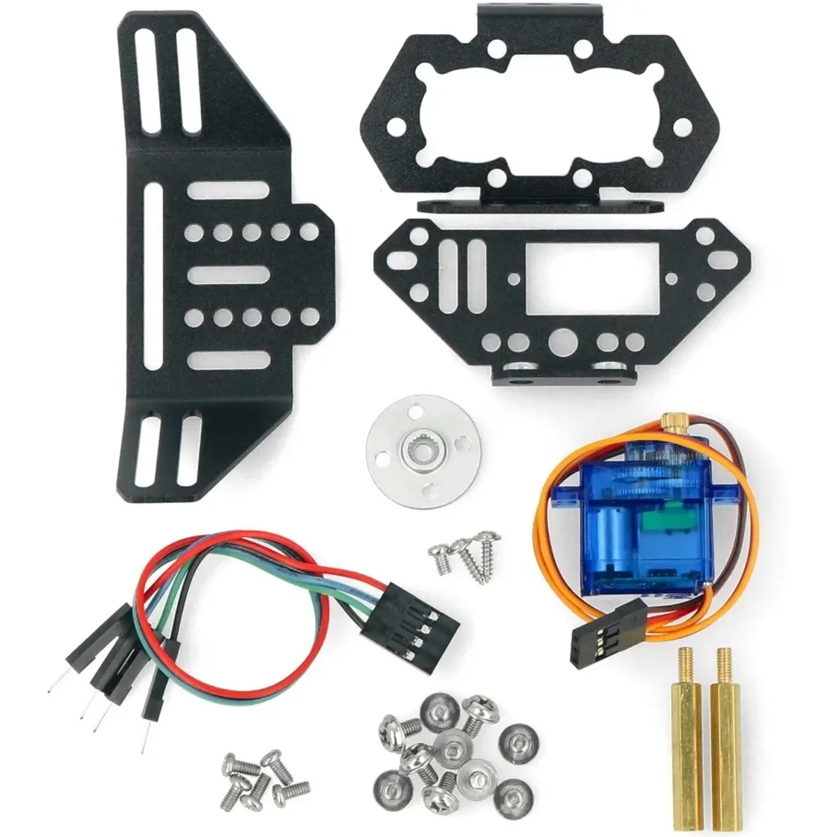 Para ajudar o Maqueen a "ver" o que está à sua volta, este kit inclui um servo-motor que permite controlar a orientação de um apoio onde poderá instalar de sensores de distância.