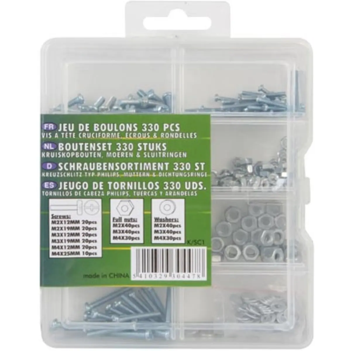 Conjunto de 330 peças (parafusos, porcas e anilhas M2 / M3 / M4)