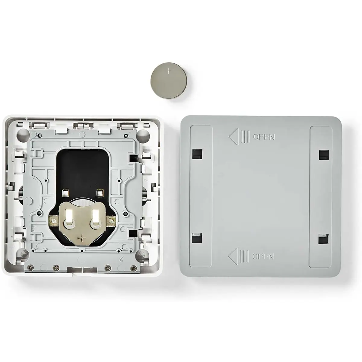 Com dimensões de 87 x 87 mm, parece um interruptor de luz normal quando montado na parede, mas oferece total liberdade para decidir onde montá-lo usando o adesivo de dupla face ou parafusos fornecidos. A bateria incluída dura até 12 meses em uso médio, embora seja notificado quando a bateria estiver fraca para que possa substituí-la quando necessário.