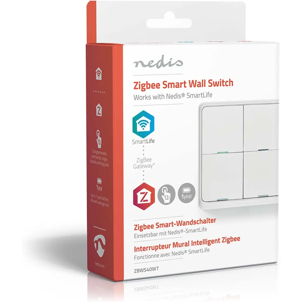 Nedis ZBWS40WT - Interruptor 4 teclas Zigbee (compatível c/ Tuya) de superfície SmartLife