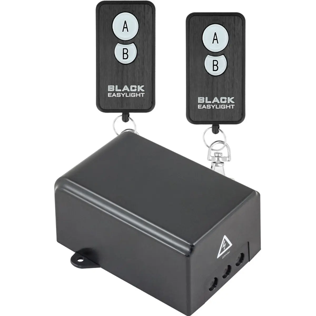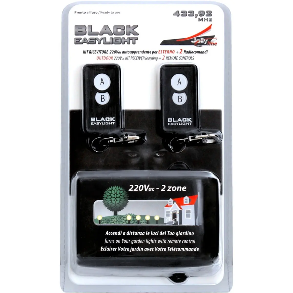 Este kit é composto por uma unidade receptora com duas saídas (230Vac) e dois controles de dois canais. Pode ser usado ao ar livre, para acender e apagar luzes, sistemas de rega de jardins ou outras aplicações.
