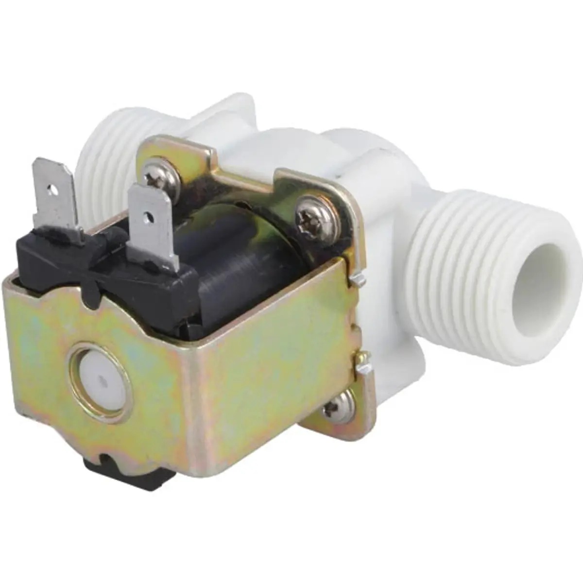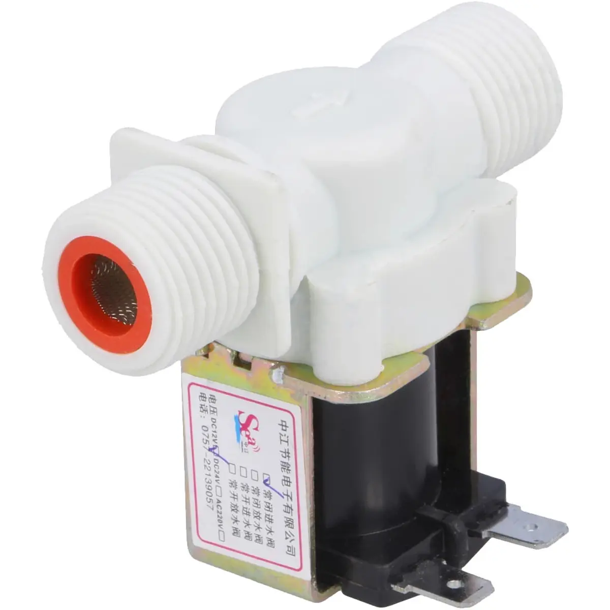 Esta é uma válvula com solenóide de 12V, normalmente fechada (NC) e sem distinção de polaridade.
