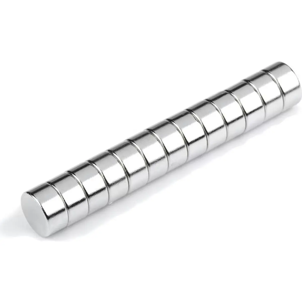 Íman de neodímio redondo, com magnetização axial e revestimento Ni-Cu-Ni, Ø10x5 mm, peso 3 g e força de retenção aprox. 3,3 kg (32,4 N). Operação até 65°C. Tolerância dimensional ±0,1 mm, formato em disco, magnetização N52, ideal para montagens, fixações e aplicações de magnetismo discreto em projetos de engenharia, robótica e automação.