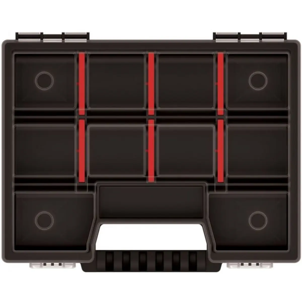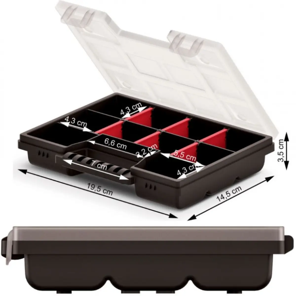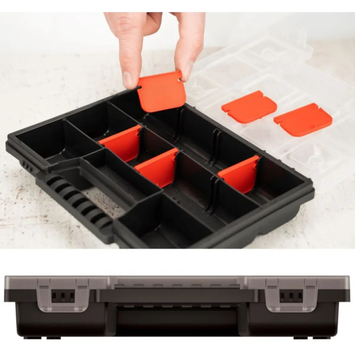 Este organizador é um elemento indispensável para qualquer entusiastas e profissionais de bricolage. Torna mais fácil manter as peças pequenas em ordem, por exemplo, parafusos, porcas ou tampas. Equipado com divisórias, permitindo que organize de acordo com suas necessidades.