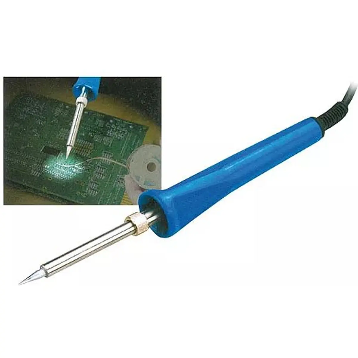 Ferro de soldar de 230 V, 40 W, com iluminação LED para iluminar a área de soldagem. Inclui ponta de 0,5 mm (N1-1), permitindo soldagens de precisão em componentes pequenos.