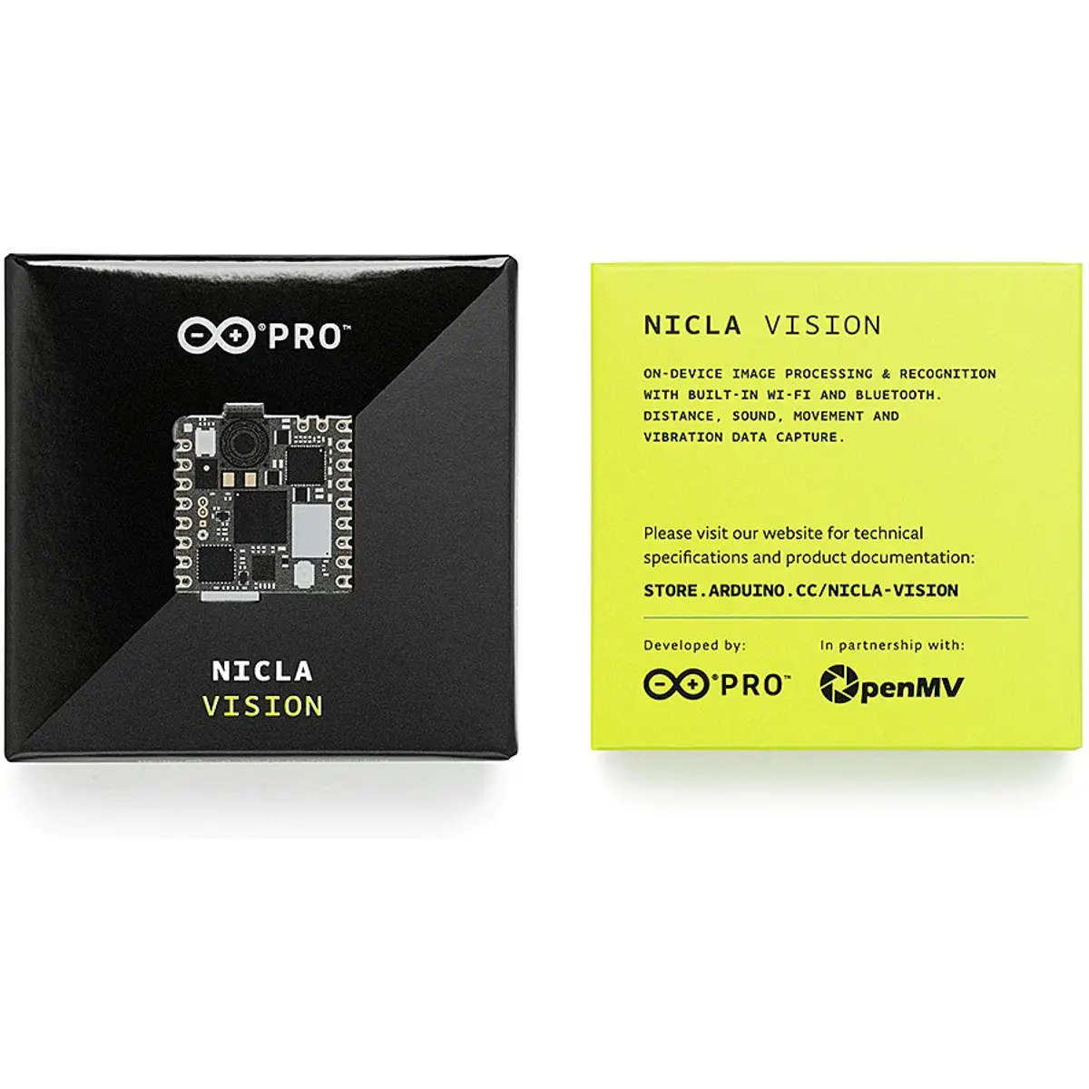O Arduino® Nicla Vision é um poderoso microcontrolador equipado com câmara de 2MP a cores, com um formato minúsculo, pronto para efetuar a análise e processamento de imagens. Para além da câmara, também possui um microfone integrado, sensor de distância, sensor de movimento inteligente de 6 eixos, conectividade WiFi, BLE e suporta MicroPython.