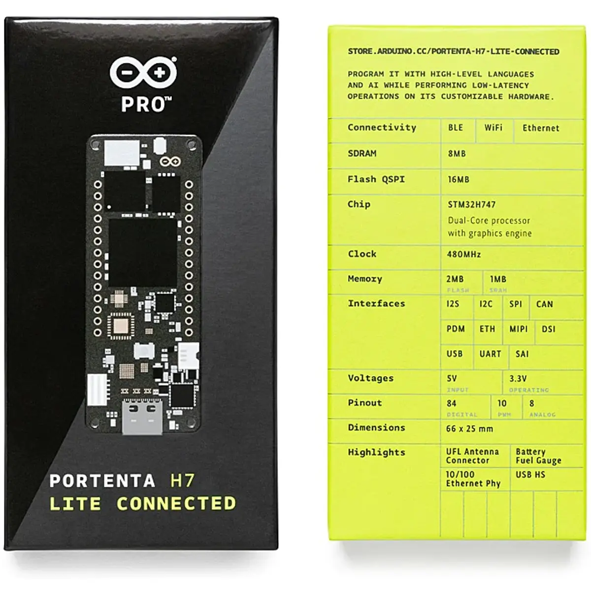 O Portenta H7 Lite Connected executa simultaneamente código de alto nível e tarefas em tempo real graças aos seus dois processadores. Por exemplo, ele pode executar código compilado para Arduino e MicroPython ao mesmo tempo e fazer com que os dois núcleos se comuniquem por meio de um mecanismo de chamada de procedimento remoto que permite chamar funções no outro processador sem problemas para multitarefa real. Os algoritmos de aprendizagem de máquina podem agora ser executados simultaneamente junto com a interação sensor/atuador de baixa latência.