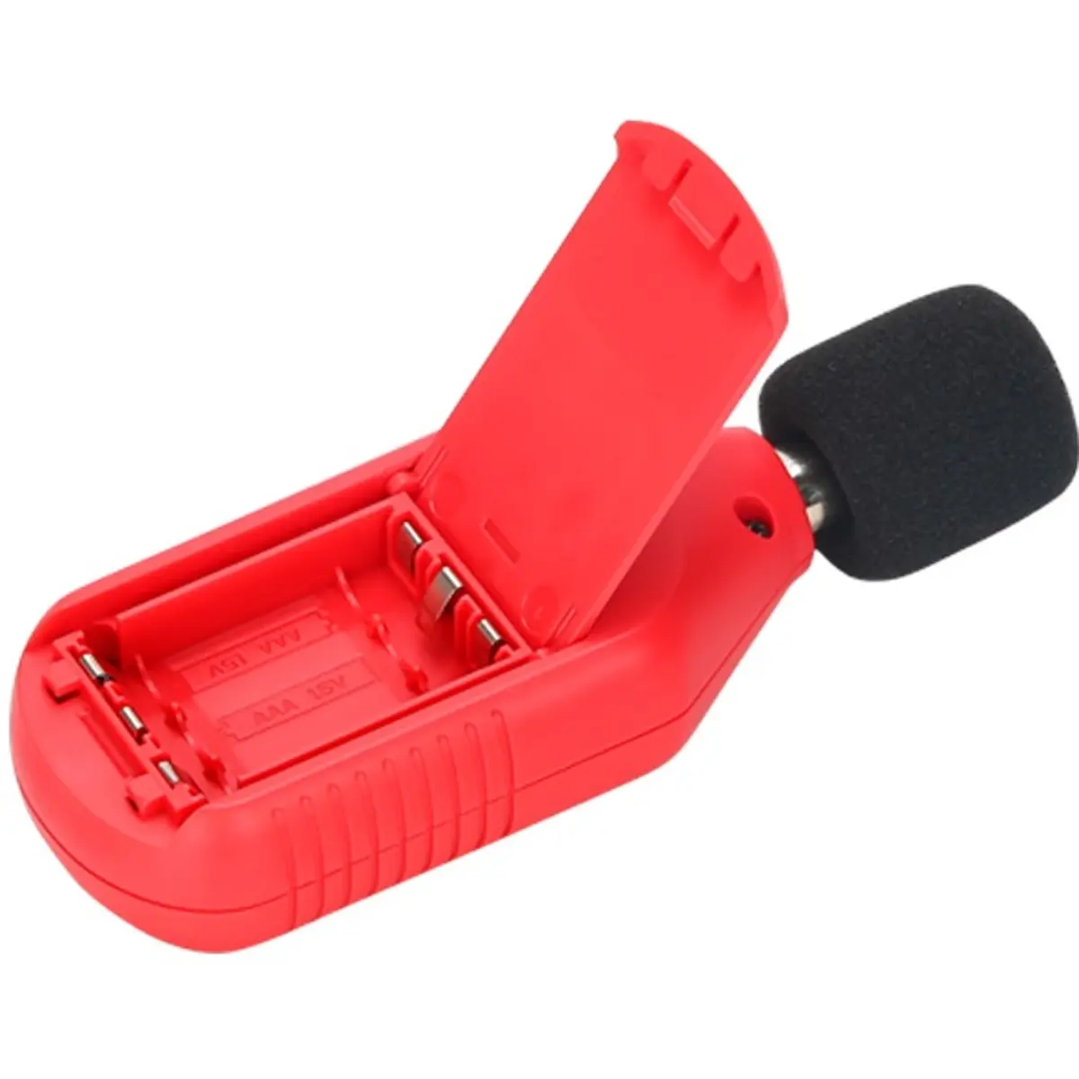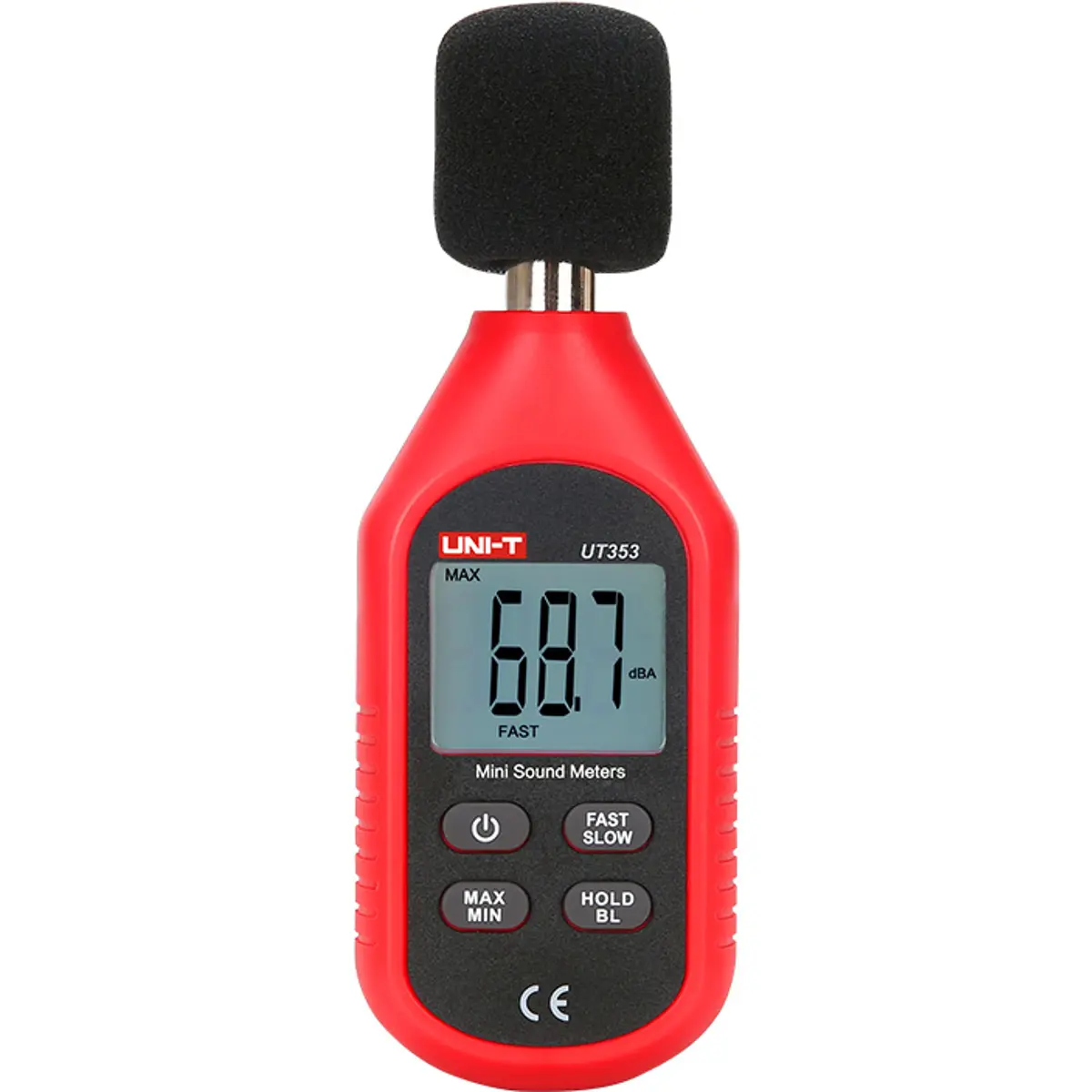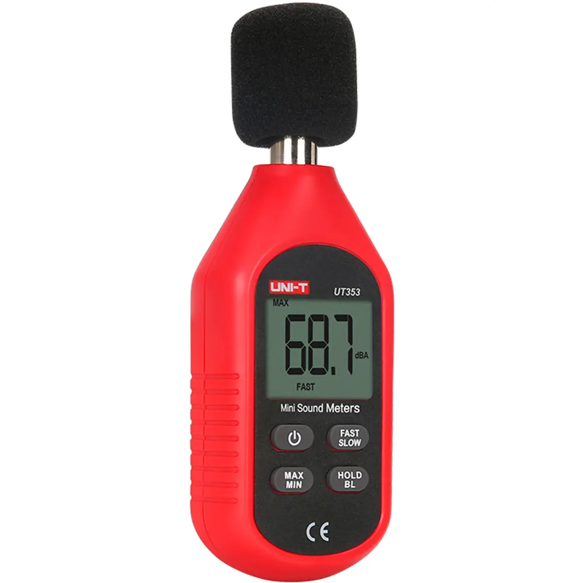 O mini medidor digital de nível de som (sonómetro) UT353 converte o som ambiente em sinais elétricos, processa dados e exibe o resultado no ecrã LCD.