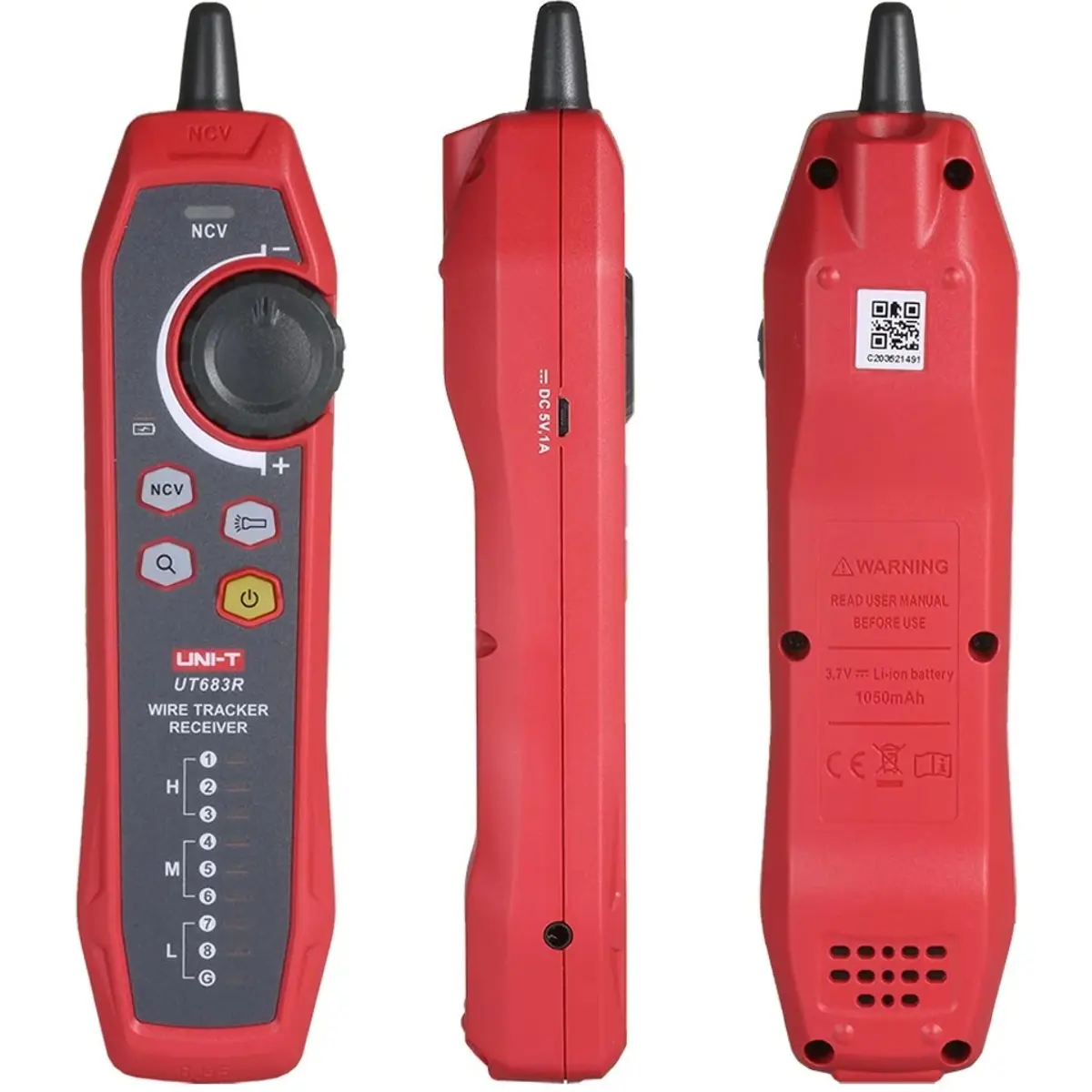 O UT683KIT é um rastreador de fios inteligente que consiste num transmissor e num receptor. Ele foi concebido com forte capacidade anti-interferência e pode localizar o cabo de destino com rapidez e precisão, bem como identificar circuito aberto, curto-circuito, polaridade e distinguir rapidamente a falha do cabo.