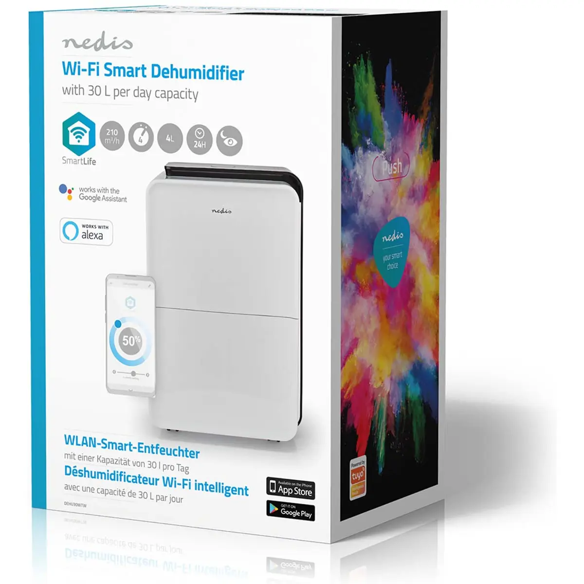 Basta conectá-lo à sua rede Wi-Fi doméstica e usá-lo através do aplicativo Nedis® SmartLife (iOS e Android) ou pelos botões do próprio desumidificador. Este também suporta controle de voz via Alexa e Google Assistant.