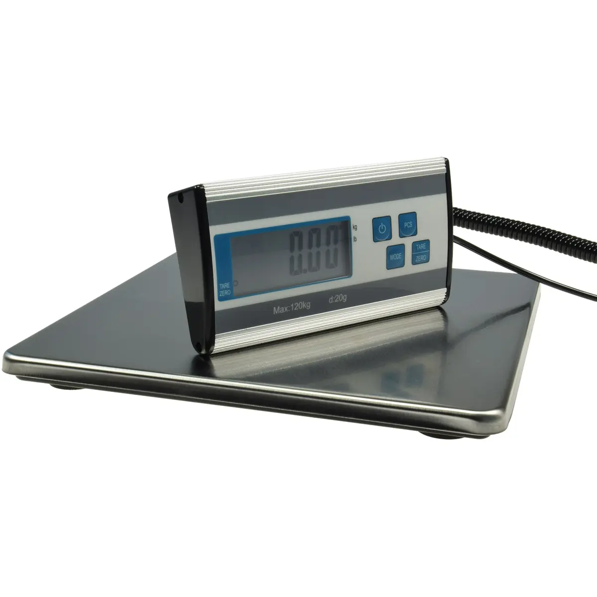 Balança de alta qualidade com uma placa de aço inoxidável estável de 27x27cm e uma carga máxima de 120kg. Pode ser usado universalmente como balança de encomendas, balança de bagagem, balança de mala, balança de armazém e em muitas outras áreas, como cozinha, armazém, logística.