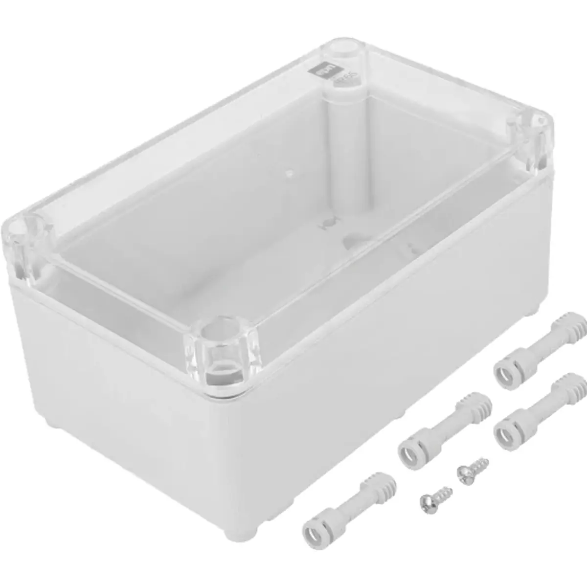 Caixa plástica 105x170x82mm com tampa transparente oferece proteção IP65 contra poeira e água, e resistência a impactos IK07. A carcaça cinzenta em formato universal facilita a montagem em diversos equipamentos, quer interiores quer exteriores. Com dimensões compactas, é adequada para caixas de proteção de componentes elétricos e de telecomunicações, assegurando durabilidade, vedação e montagem simples em sistemas modulares, mantendo a integridade da instalação sob condições ambientais adversas.