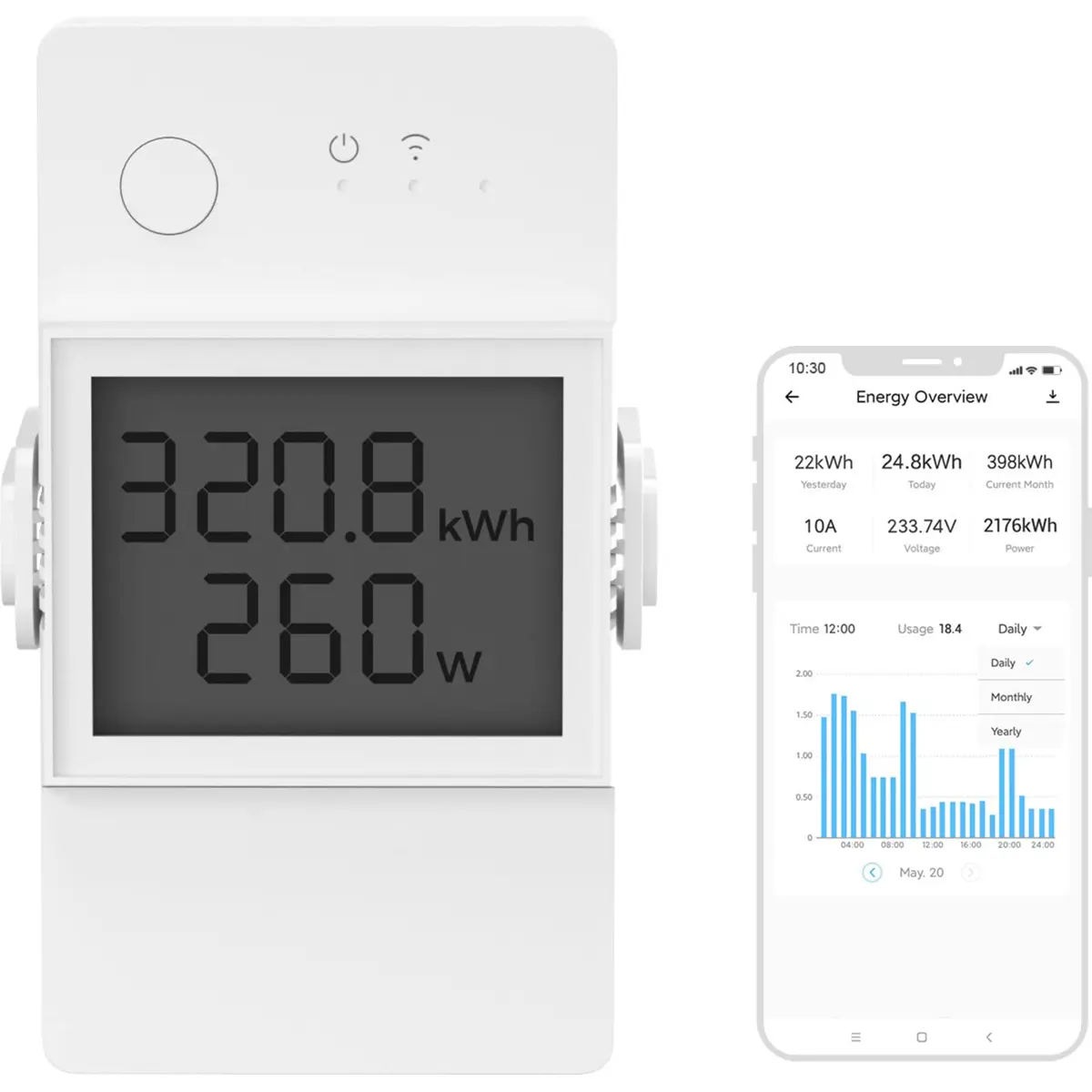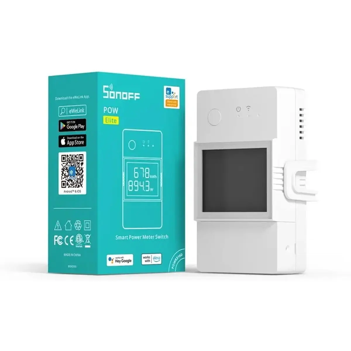 O SONOFF POW Elite 16D (POWR316D) é um relé inteligente com conectividade Wi-Fi e medição de energia. Está equipado com um ESP32, recém-atualizado, 200% mais rápido que o chip do modelo anterior e um display LCD que mostra (alternadamente) a potência/energia e a tensão/corrente
