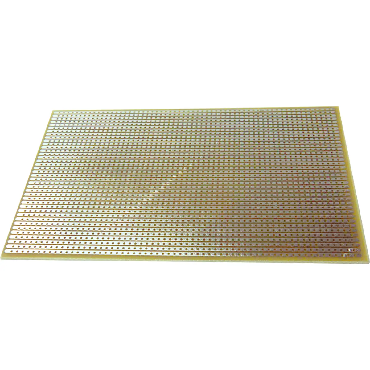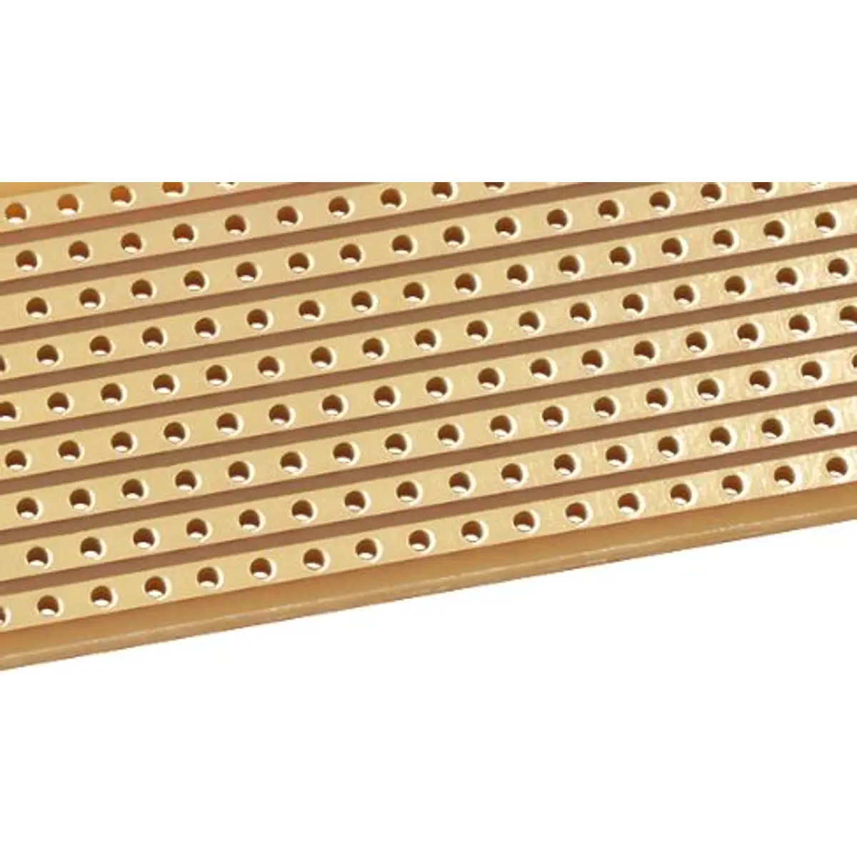 Placa de circuito impresso perfurada de formato linear 100x160 mm, com camada de cobre de 35 µm numa face e laminado FR4, com furação de passo 2,54 mm e furos Ø1 mm, criando uma grelha de montagem prática para prototipagem. A espessura de 1,5 mm confere rigidez, oferecendo uma base estável para montagem de componentes eletrónicos, ensaios e layout. Ideal para projetos educacionais, prototipagem rápida e aplicações industriais que exijam perfuração precisa e fiável.
