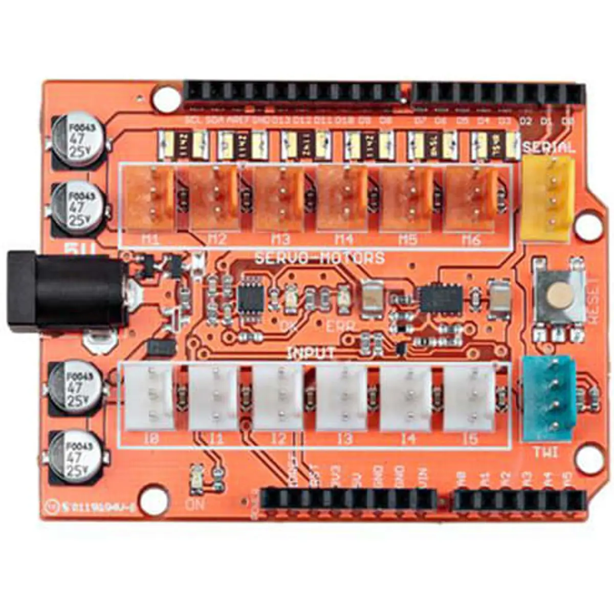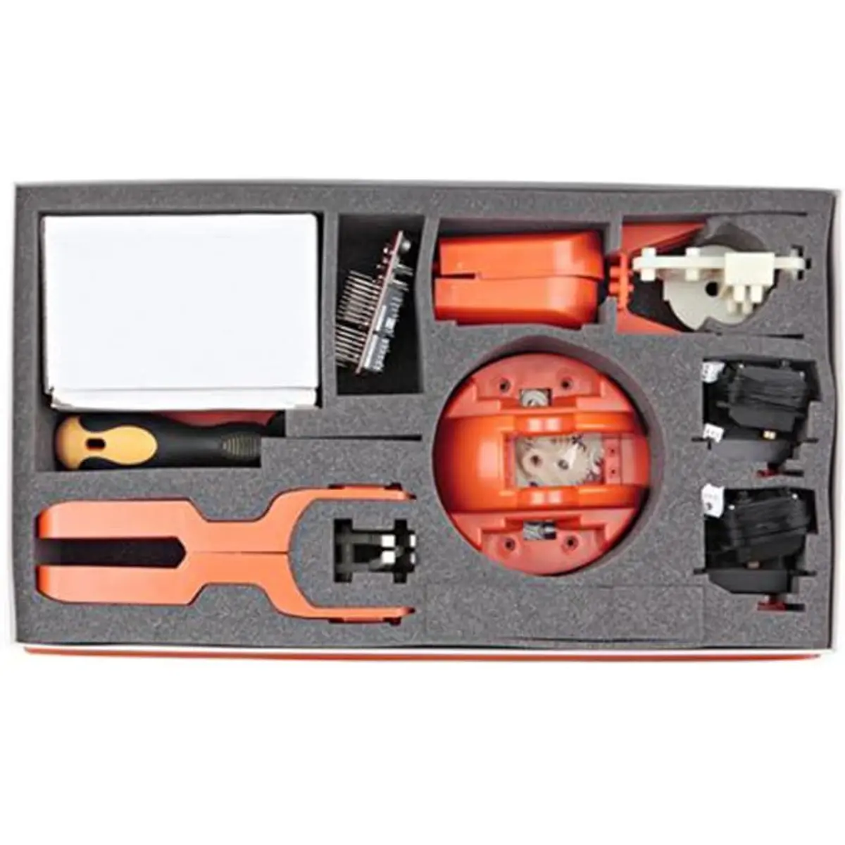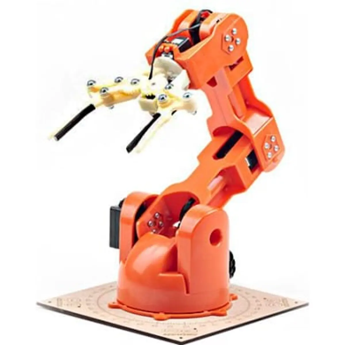 TinkerKit Arm é fornecido em kit e requer montagem antes do uso. Inclui um Braccio Shield servo para que possa ligar à sua placa Arduino (não incluída)