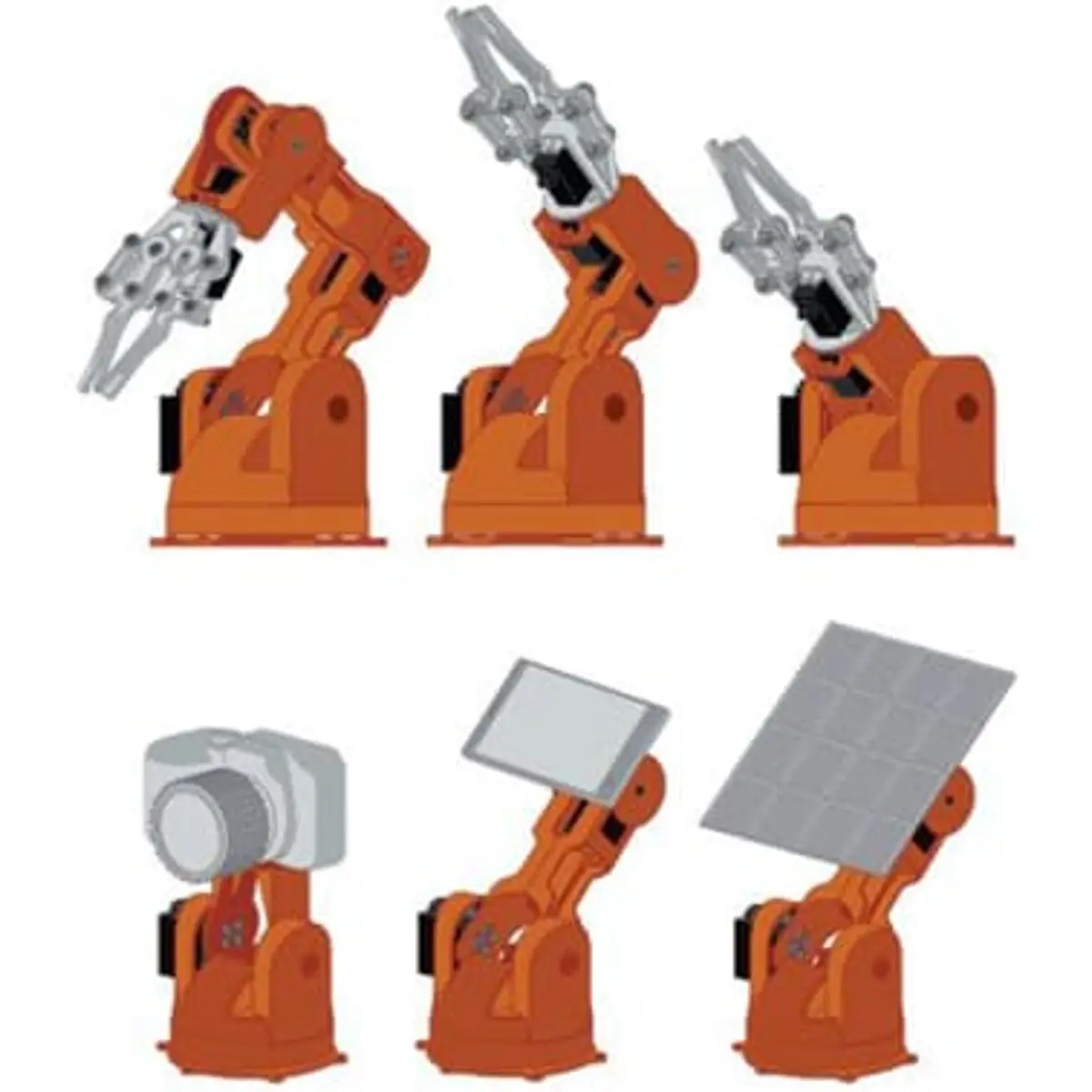 Pode ser usado de várias maneiras e é facilmente adaptável. Pegue e mova objetos, monte uma câmera e acompanhe os movimentos via videochamada ou instale um painel solar e acompanhe o movimento do sol.