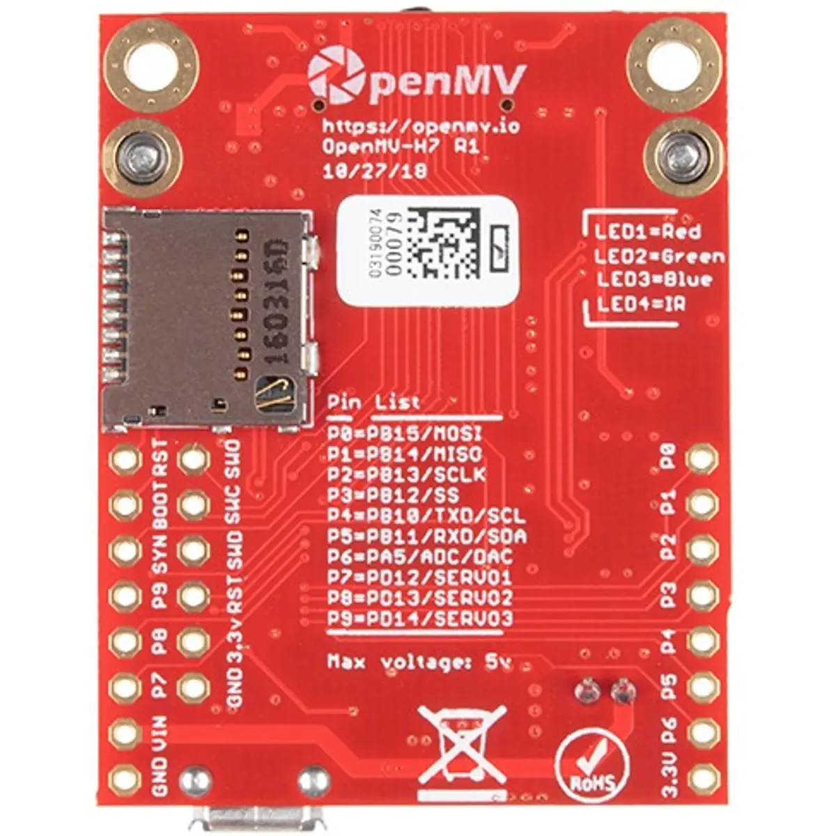 ● Uma tomada de cartão μSD capaz de 100Mbs de leitura/escrita que permite ao seu OpenMV Cam tirar fotografias e tirar facilmente os activos de visão da máquina do cartão μSD.