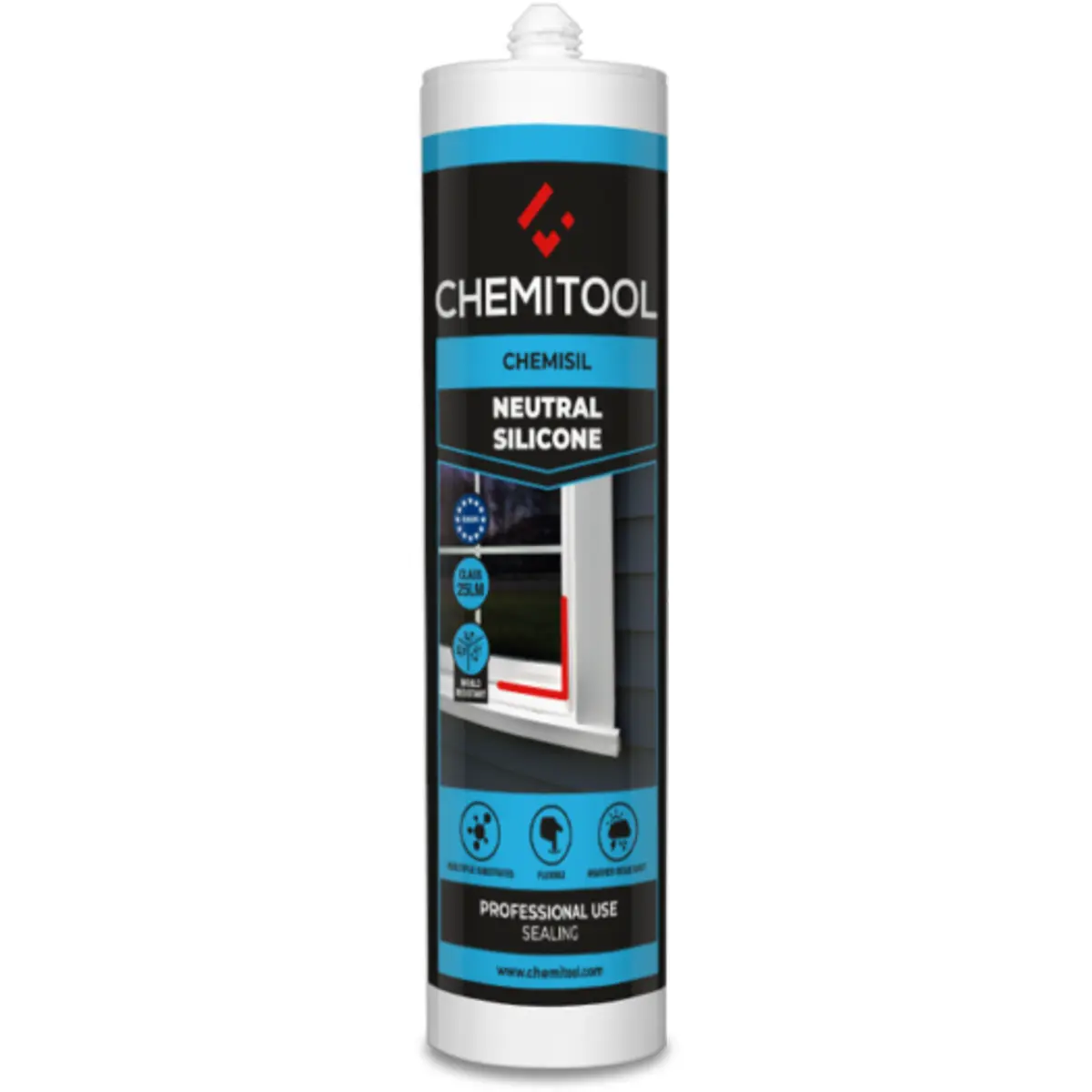 Silicone Neutro CHEMISIL é um vedante mono componente, de base neutra, que cura em contacto com a humidade atmosférica formando um cordão macio e elástico extremamente resistente.