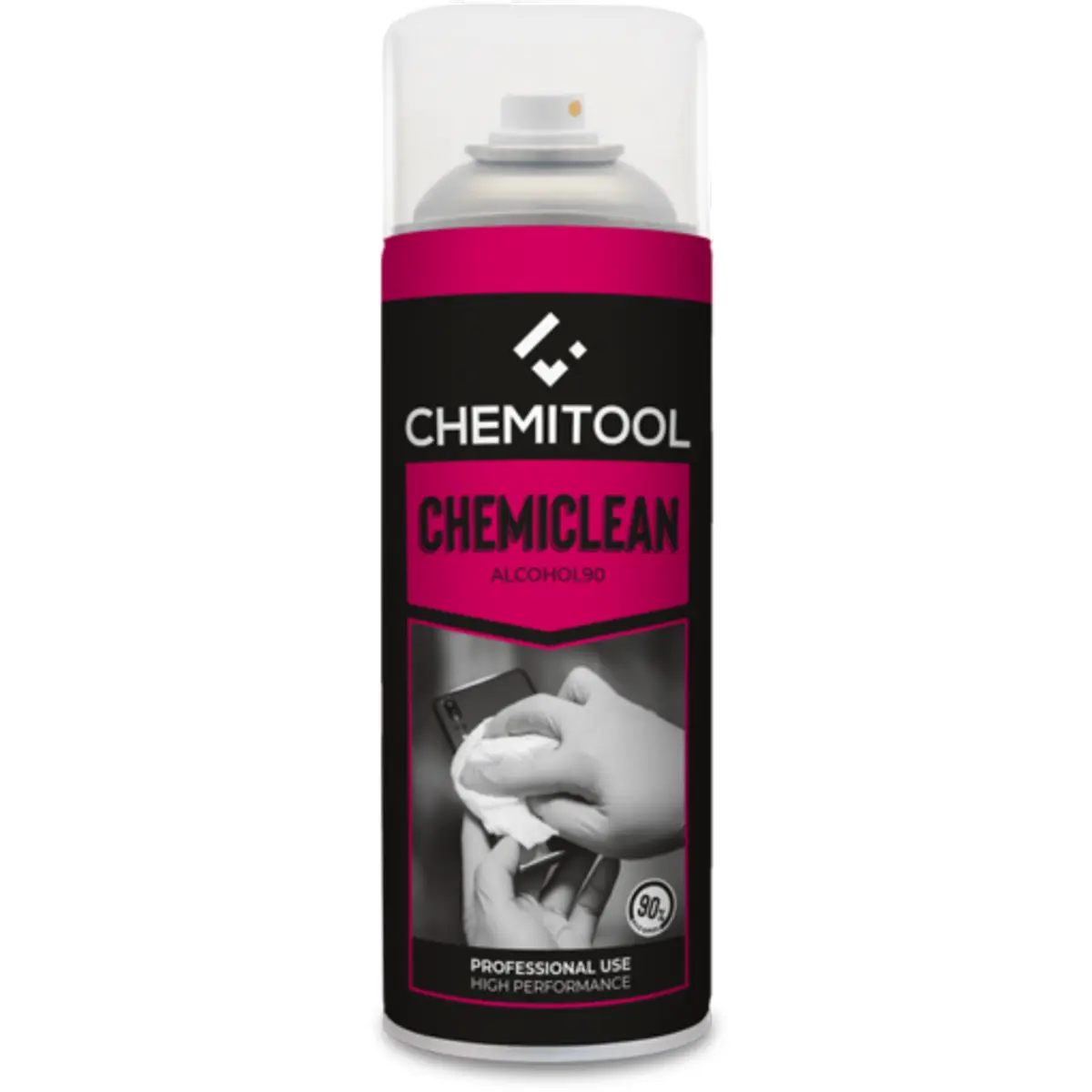 Spray Higienizante Álcool 90% CHEMICLEAN com grau de pureza de 90% é indicado para limpar ambientes domésticos, pincéis, telefones, telemóveis, ratos, teclados, monitores, computadores, portáteis, dispositivos eletrónicos, CD/DVDs, fitas magnéticas, circuitos impressos. Também pode ser usado para limpar artigos óticos, como lentes, objetivas fotográficas e microscópios.