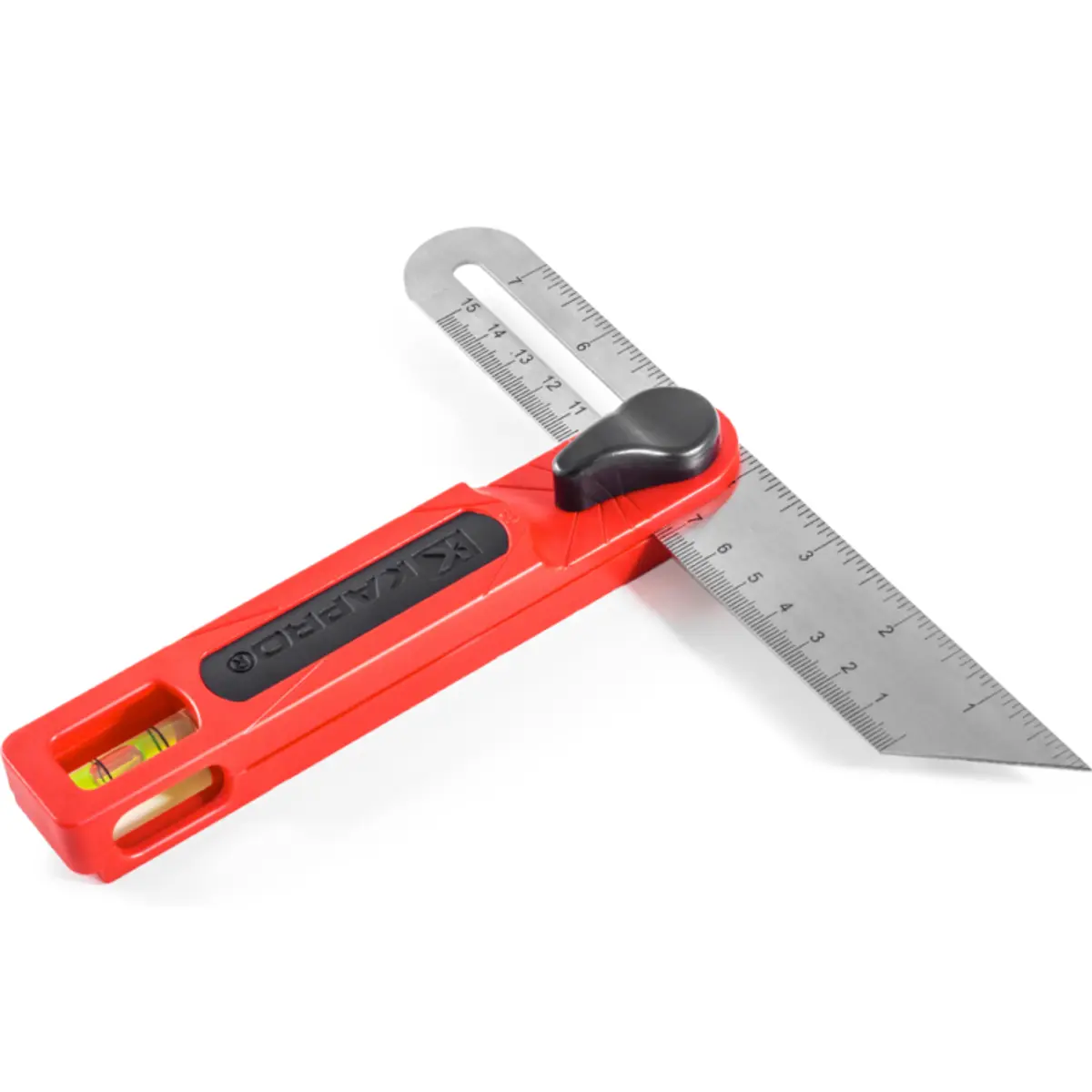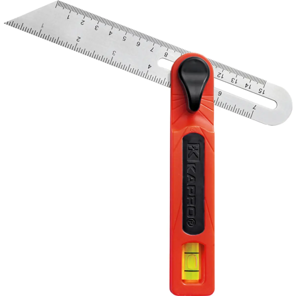 - Inclui nível de bolha prático e marcadores de ângulo para marcação precisa.