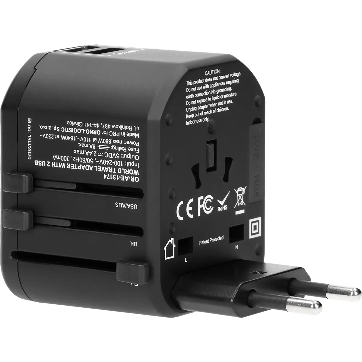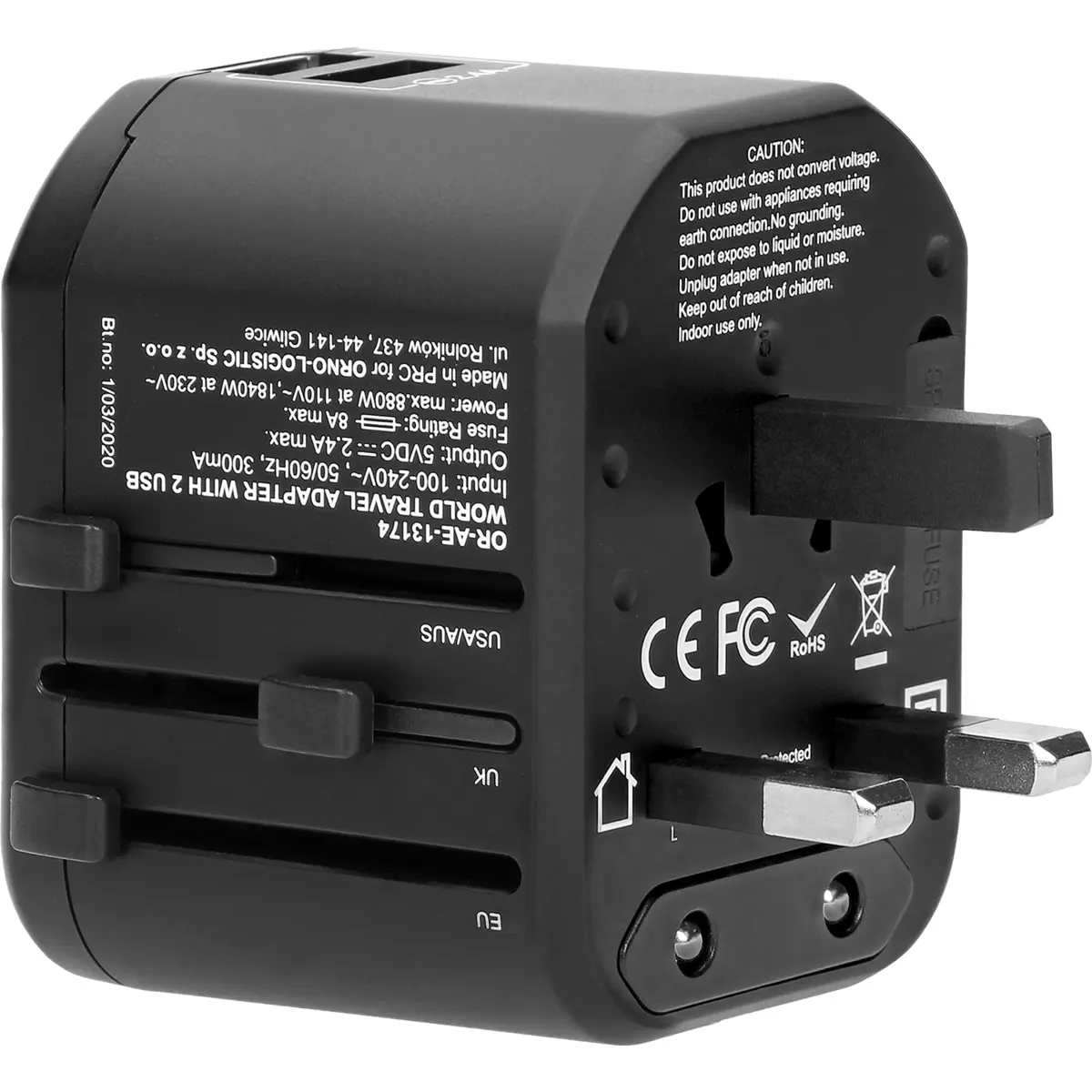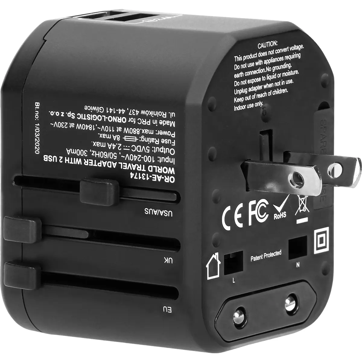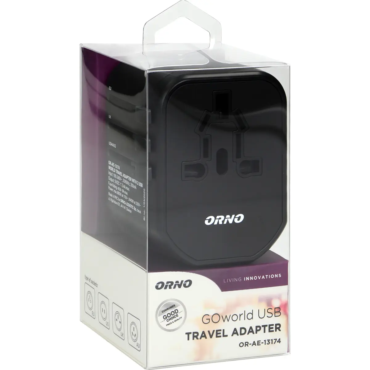 Orno OR-AE-13174 - Adaptador de viagem universal c/ carregamento USB