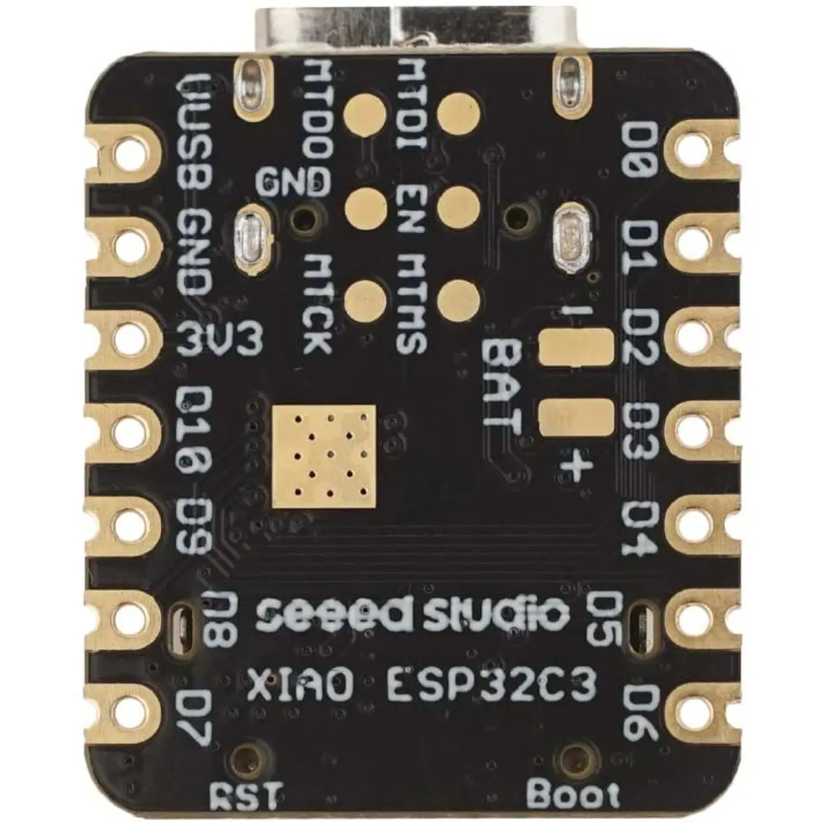 O Seeed Studio XIAO ESP32C3 adota a nova arquitetura RISC-V, suportando tanto as ligações sem fios Wi-Fi como Bluetooth 5.0 (BLE).