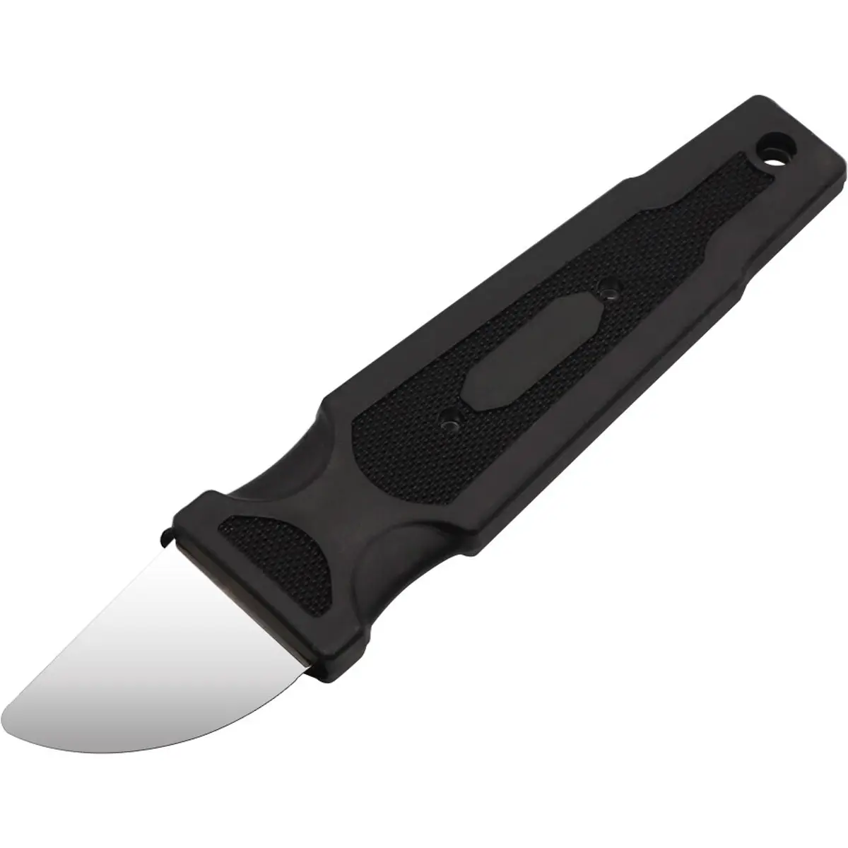 Faca de abertura universal feita de aço resistente c/ punho em plástico.