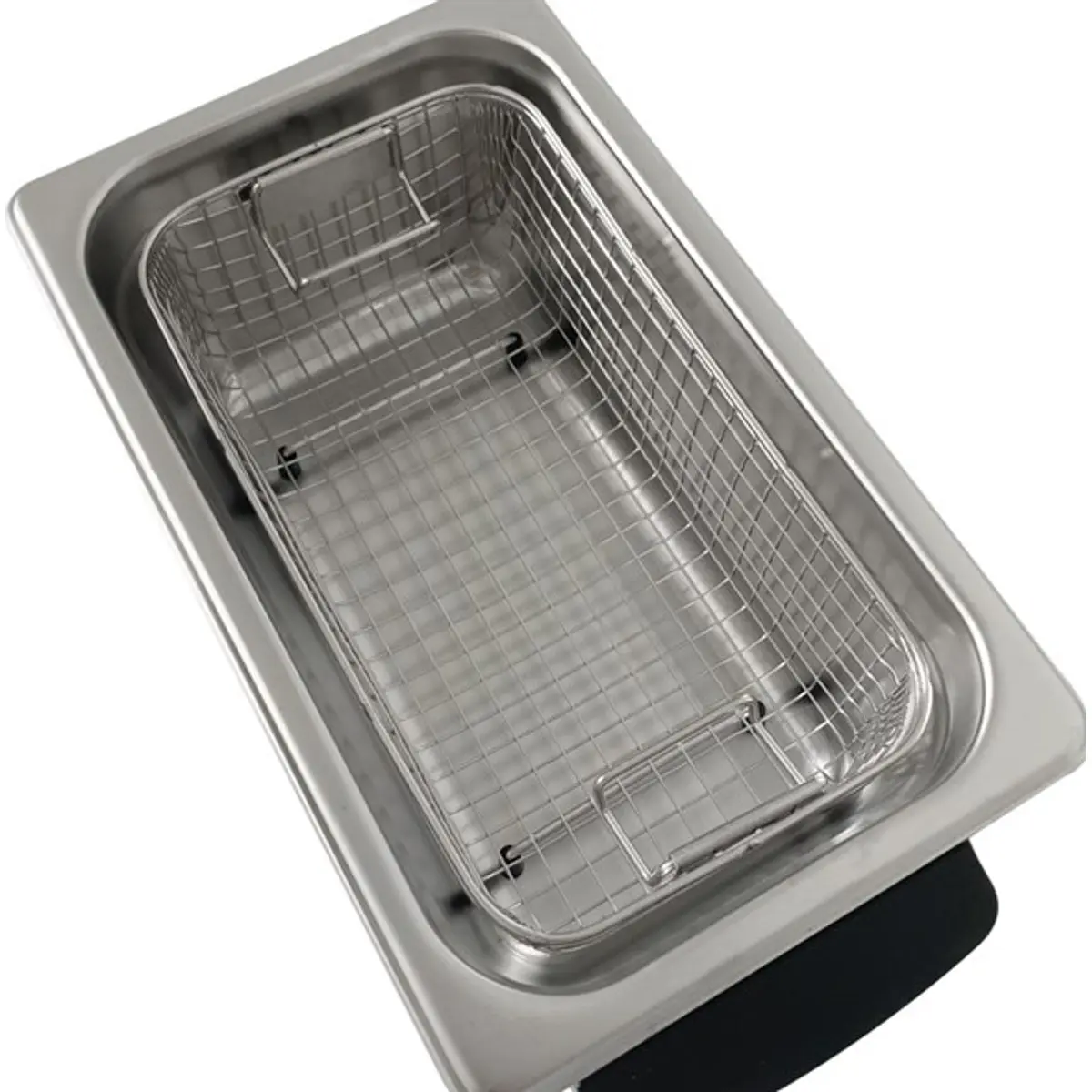 Este equipamento de limpeza por ultrassom utiliza cavitação na água para remover impurezas de ferramentas e componentes mecânicos submersos. Tanque de 3 litros em aço inox SUS304, com aquecimento por cerâmica e tanque moldado sem soldaduras para maior estanqueidade. Frequência de 40 kHz e potência total de 220 W (100 W de aquecimento, 120 W de ultrassom). Alimentação 220-240 V, temperatura ajustável entre 20 e 80 °C, e temporizador de 1 a 20 minutos. Ventilador de arrefecimento e placa base resistente à humidade; dimensões externas 270x170x240 mm, internas 240x140x100 mm.