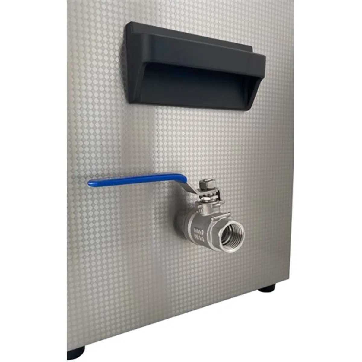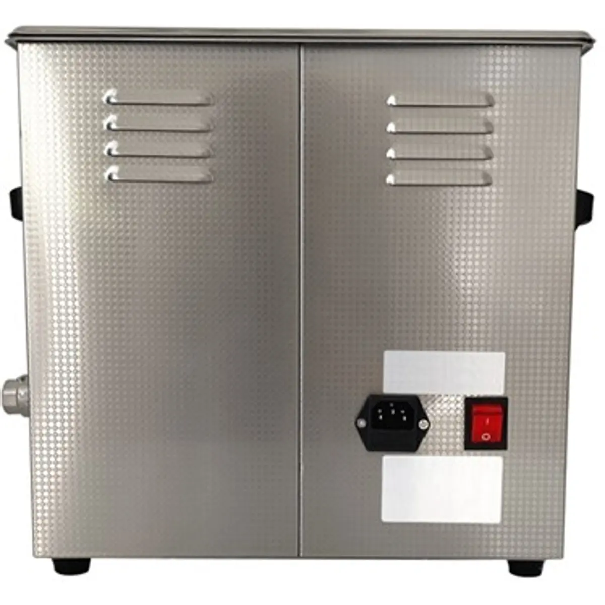 Este equipamento de limpeza ultrassónica utiliza cavitação para remover impurezas de ferramentas e componentes que podem ser submersos em água. Com tanque de 10 litros em aço inox SUS304 e frequência de 40 kHz, oferece aquecimento até 80 °C e potência total de 540W. Possui display digital, ventilador de arrefecimento, torneira de escoamento e placa base resistente à humidade. Alimenta-se a 220-240 V AC / 50 Hz; temporizador de 1 a 99 minutos.