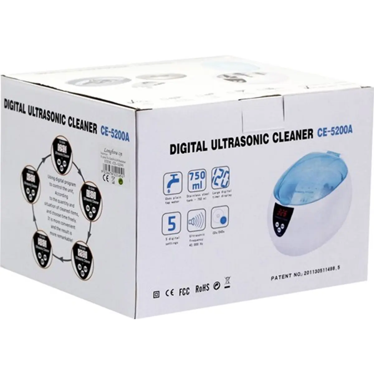 O JEKEN 5200A limpa toda a sujidade superficial de pequenos objetos, usando apenas água e vibrações geradas pelo ultrassom. Ondas ultrassónicas de 42kHz geram vibrações que criam o efeito de cavitação, gerando milhões de bolhas microscópicas que penetram até nos vincos e cavidades mais finos do artigo a ser limpo. As bolhas, juntamente com as vibrações, puxam a sujidade de toda a superfície dos objetos (óculos, anéis, correntes, relógios, etc.). Basta colocá-los no recipiente, colocar água e o aparelho fará o resto por si.