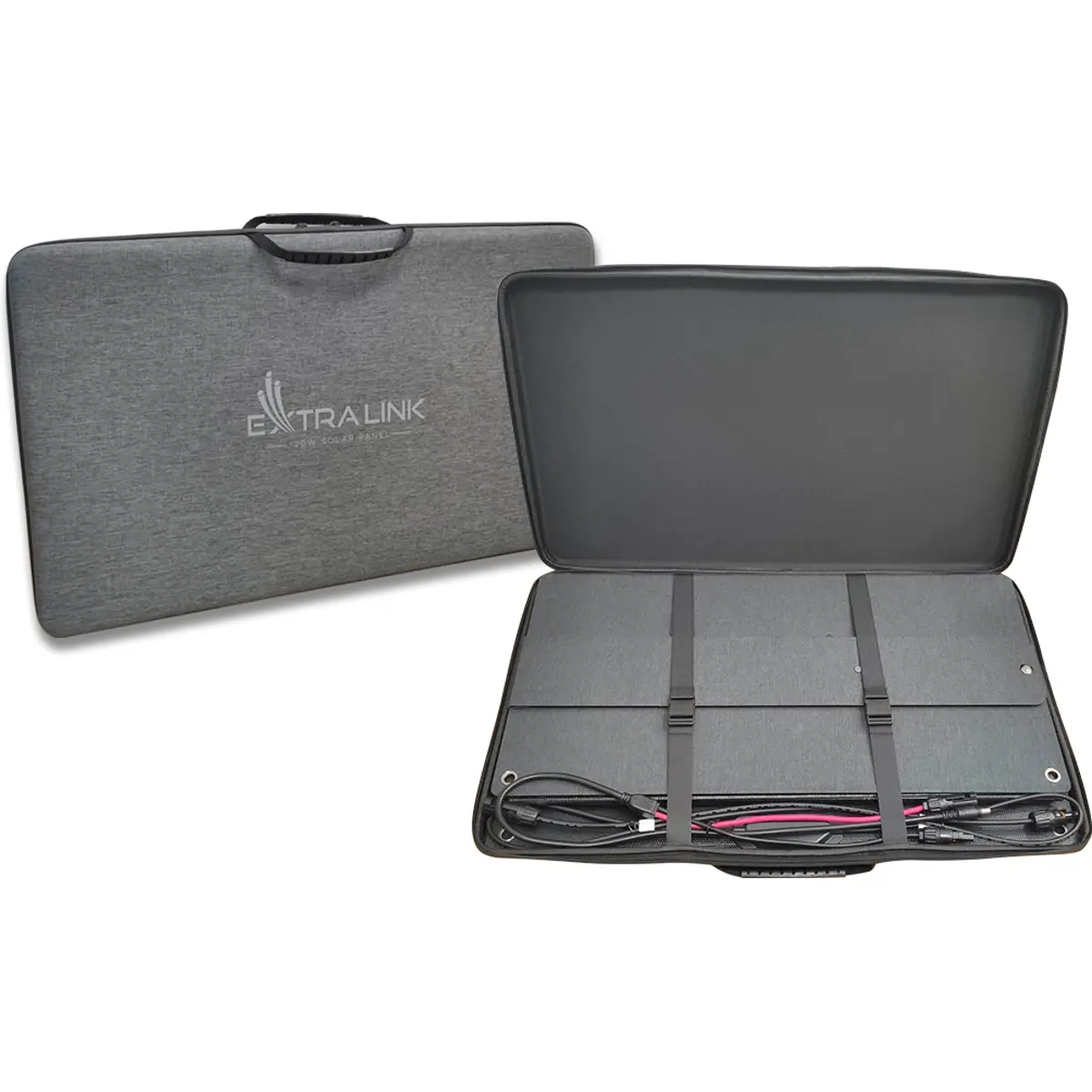 Aprecie a independência e liberdade de energia elétrica em qualquer lugar com o painel fotovoltaico EXTRALINK EPS-120W. Ideal para atividades ao ar livre, como caminhadas, camping e outras aventuras que exigem o uso de equipamentos móveis, o painel é dobrável, compacto e eficiente. Possui células solares de alta performance que geram até 120W de potência, apesar do seu tamanho compacto de 1370x616mm e espessura de 15 mm. O EPS-120W é equipado com uma base estável, permitindo que o módulo seja ajustado para um ângulo ótimo de 45°. O painel é compatível com a maioria dos power banks portáteis e vem com um cabo de carregamento AC.