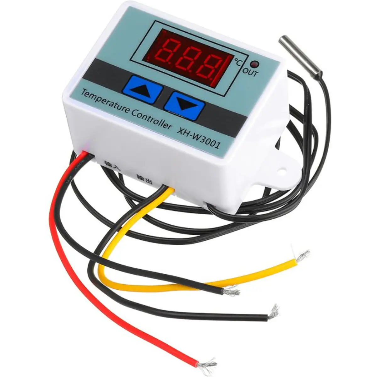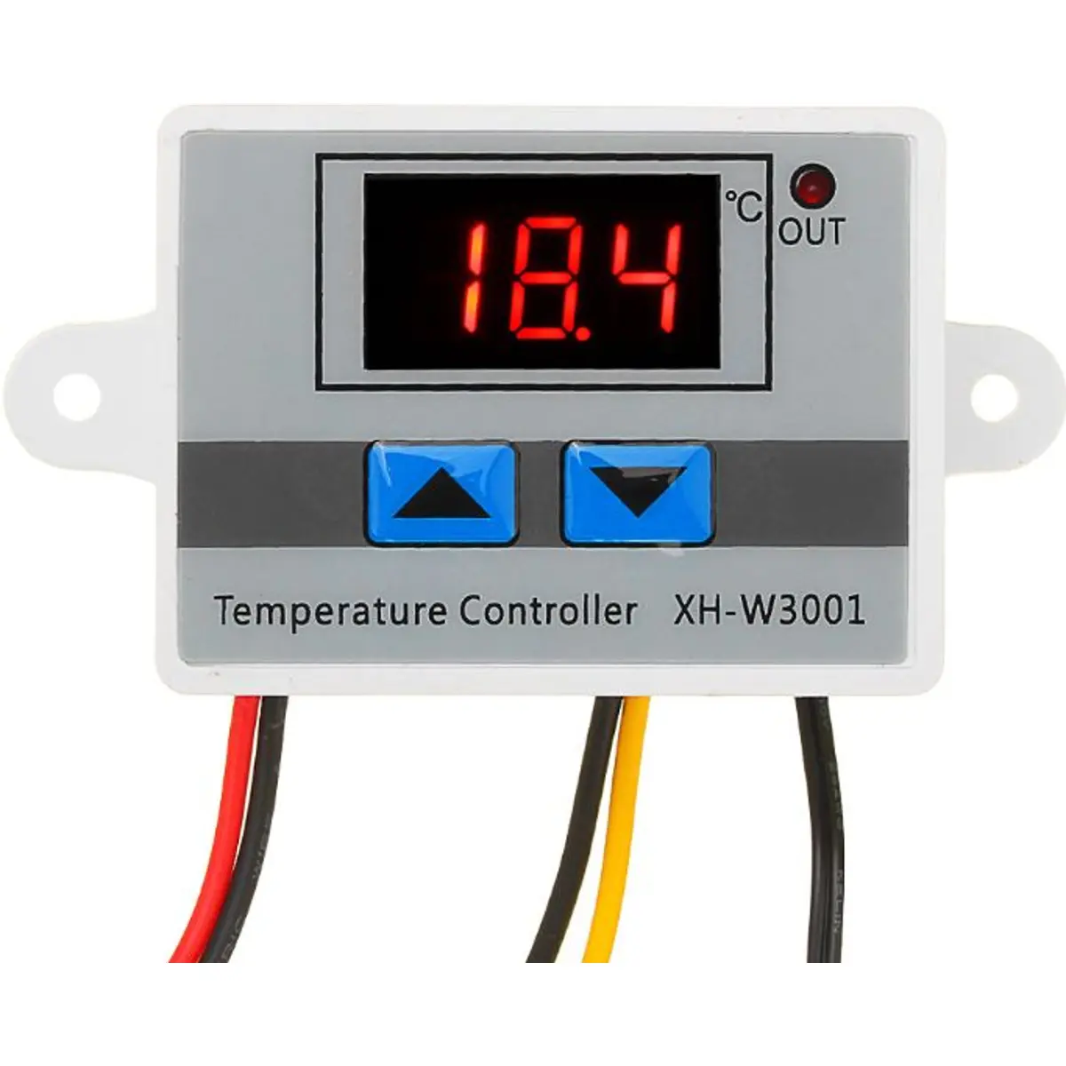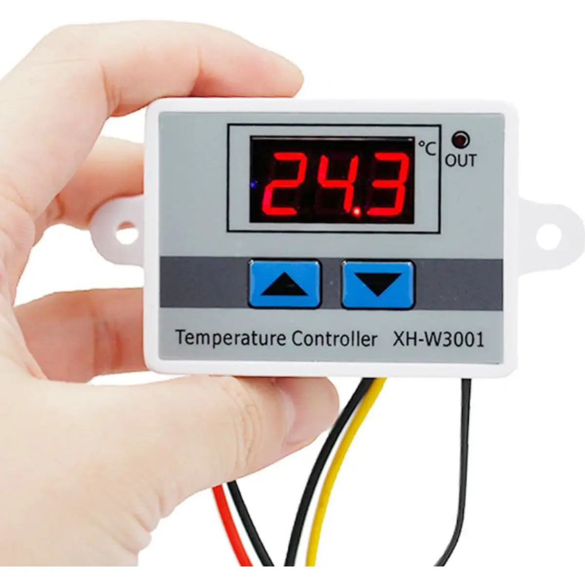 Módulo termostato digital com display LED e sinalização de estado ativo (luz indicadora OUT)