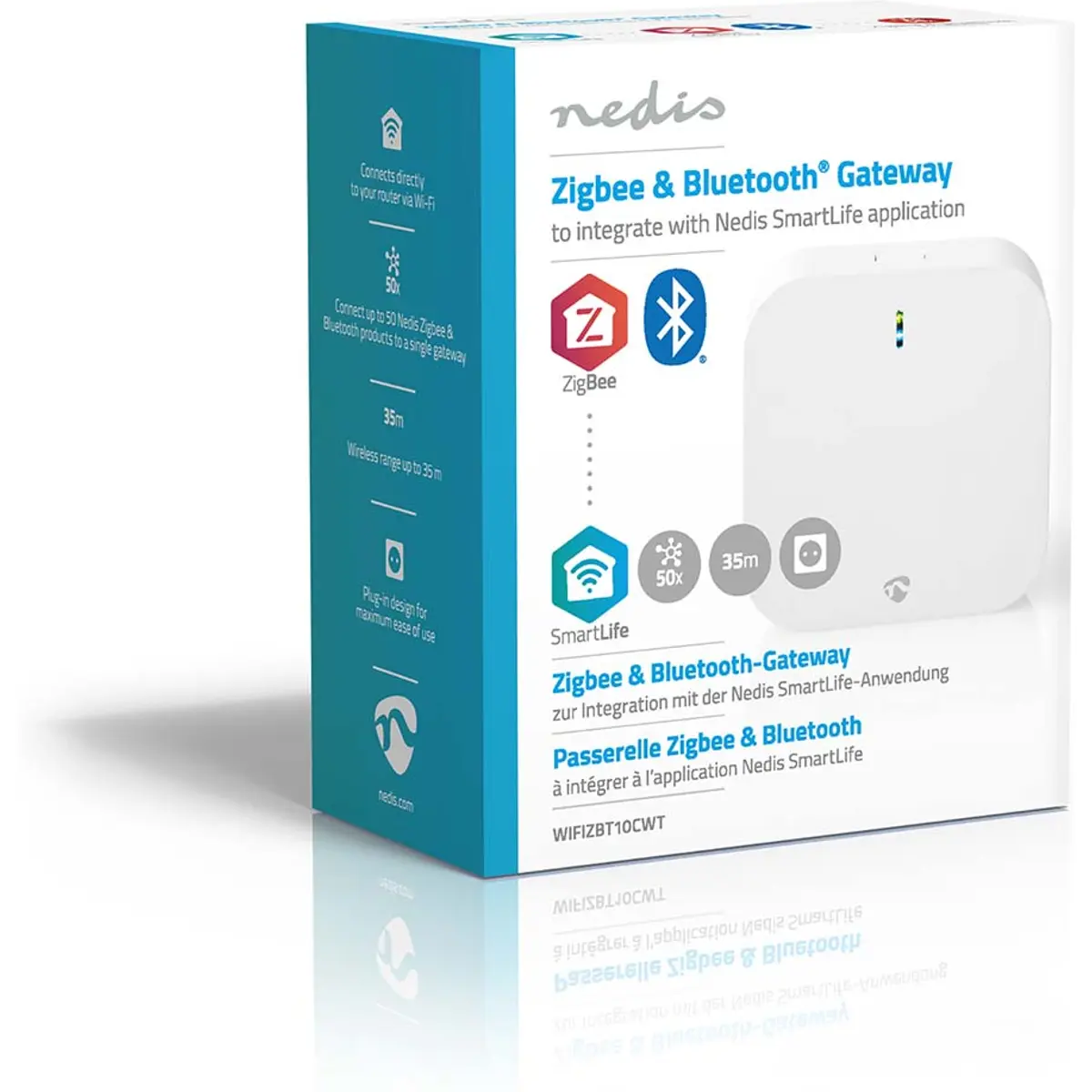 Este gateway Zigbee da Nedis® conecta-se diretamente à rede Wi-Fi, não sendo necessário nenhum cabo Ethernet. Para utilizá-lo, basta instalá-lo na aplicação Nedis® SmartLife e conectar até 50 produtos Nedis® Zigbee a partir de um único gateway.