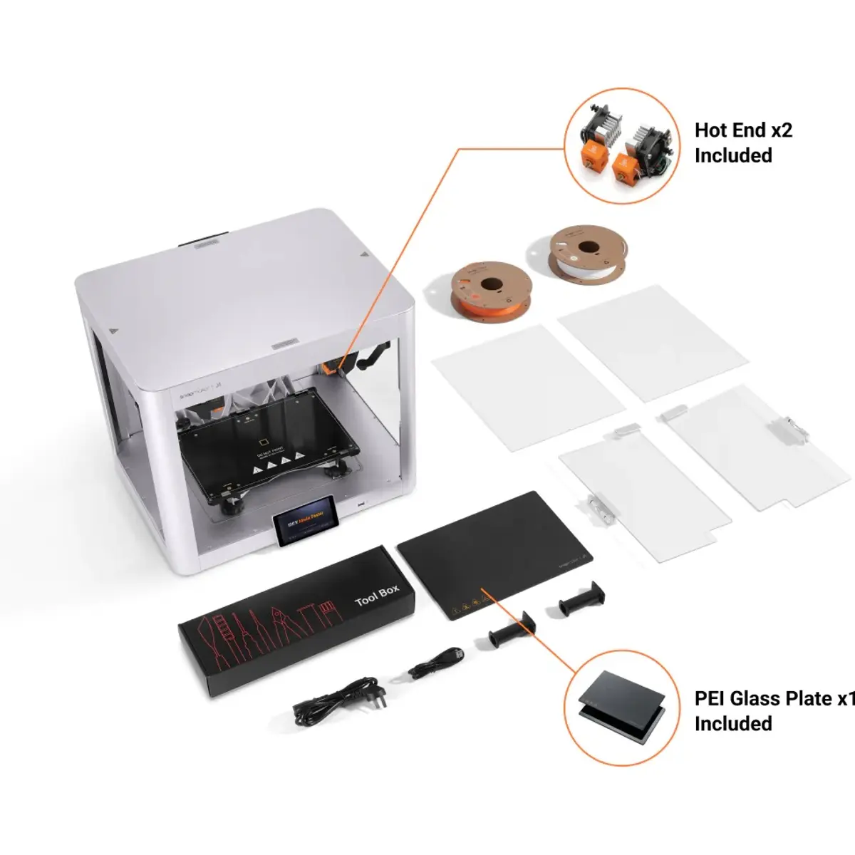 - Materiais Suportados: PLA, ABS, HIPS, PC, TPU, TPE, PETG, ASA, PP, PVA, PA, PA-GF, PA-CF;